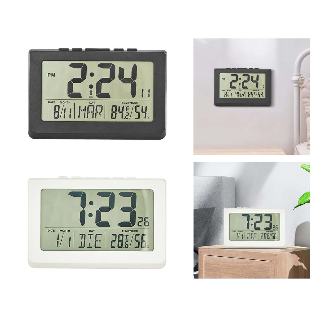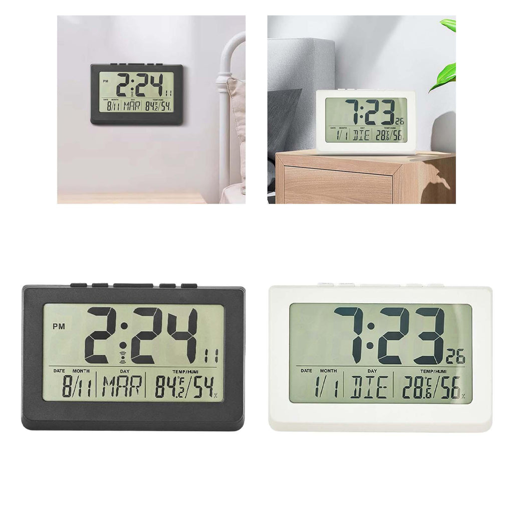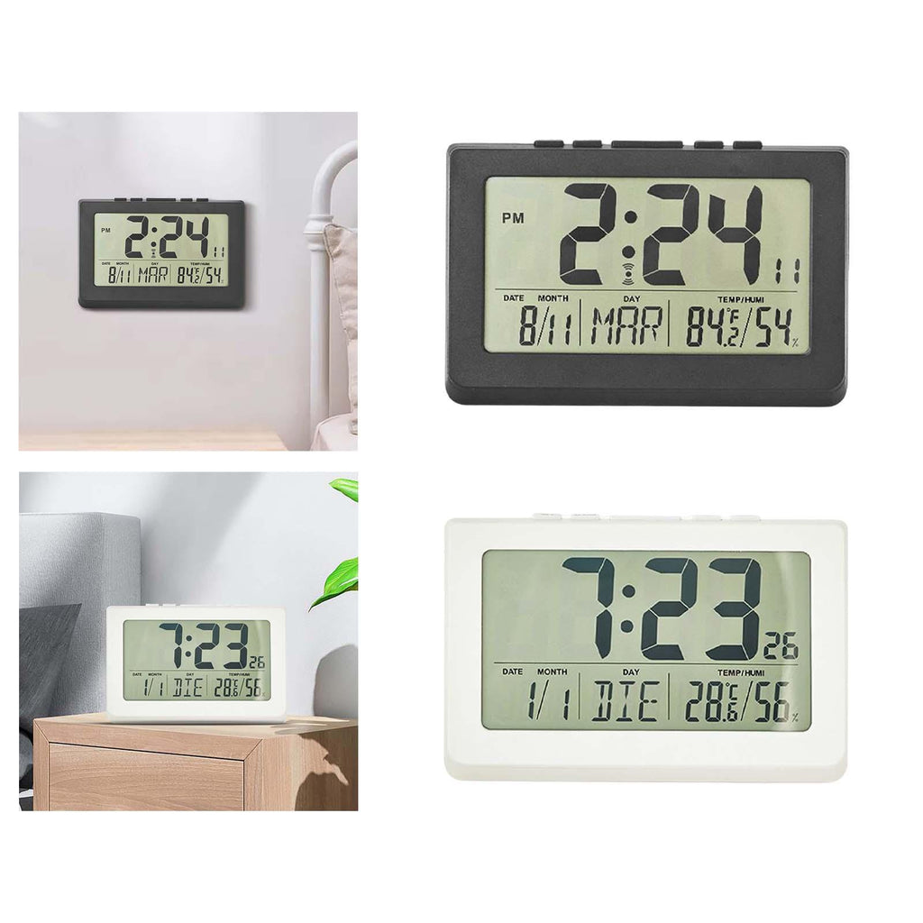 - Large Screen Digital Clock: The large screen clock is easy to display temperature, humidity, time, date, week.
