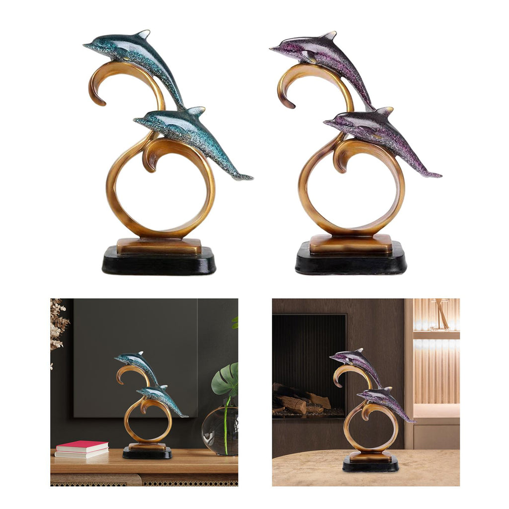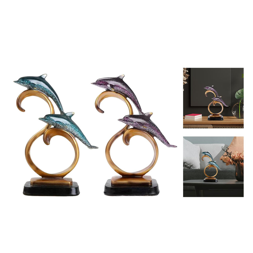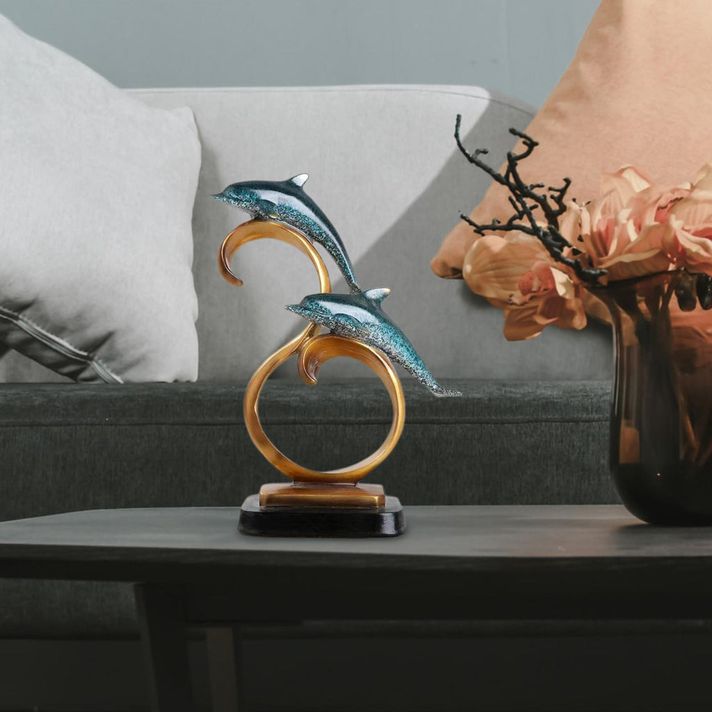Maxbell Dolphin Figurines Dolphins Statue for Home Decorations Housewarming Gift Light Blue