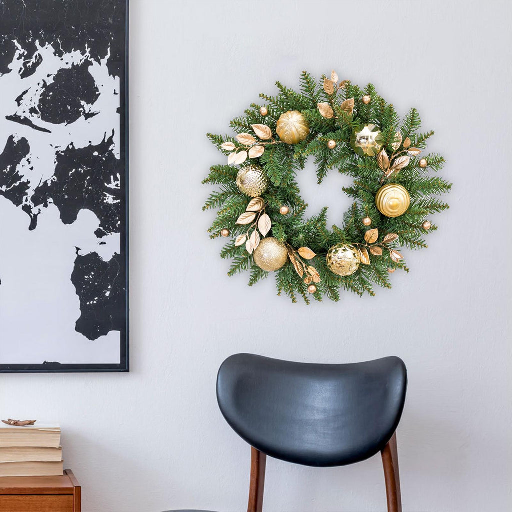 Maxbell Door Front Wreath Holiday Balls Decorative Artificial Green Leaves Wreath