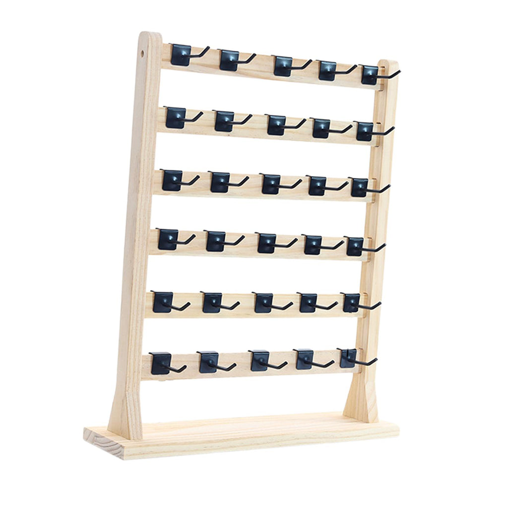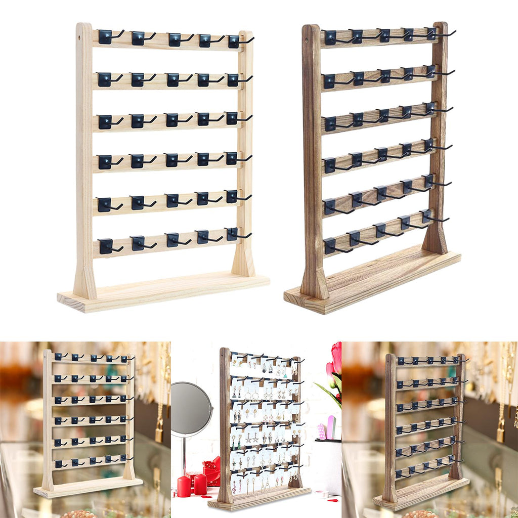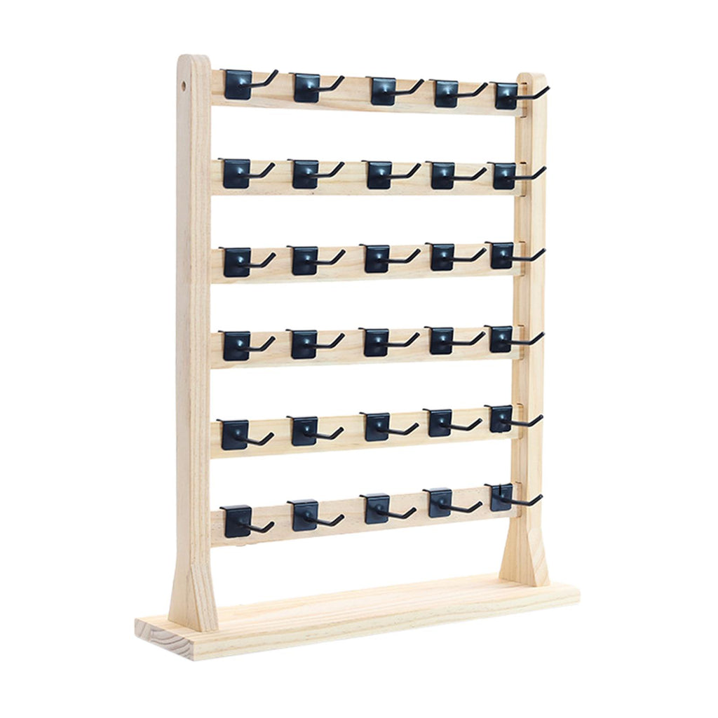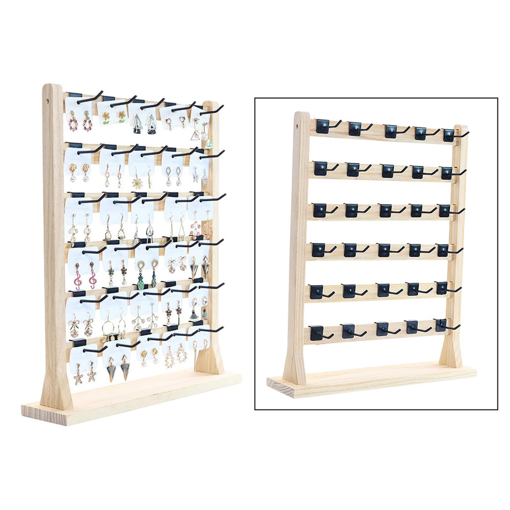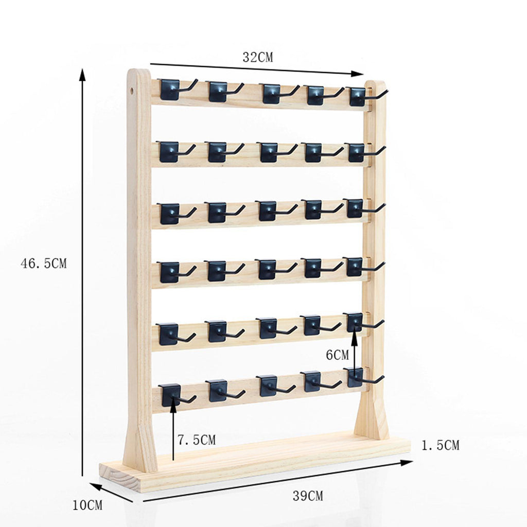 WOODEN JEWELRY HOLDER WITH HOOKS: Comes with 30 removable hooks for earring cards, bracelets, necklaces, rings, hair accessories or more.