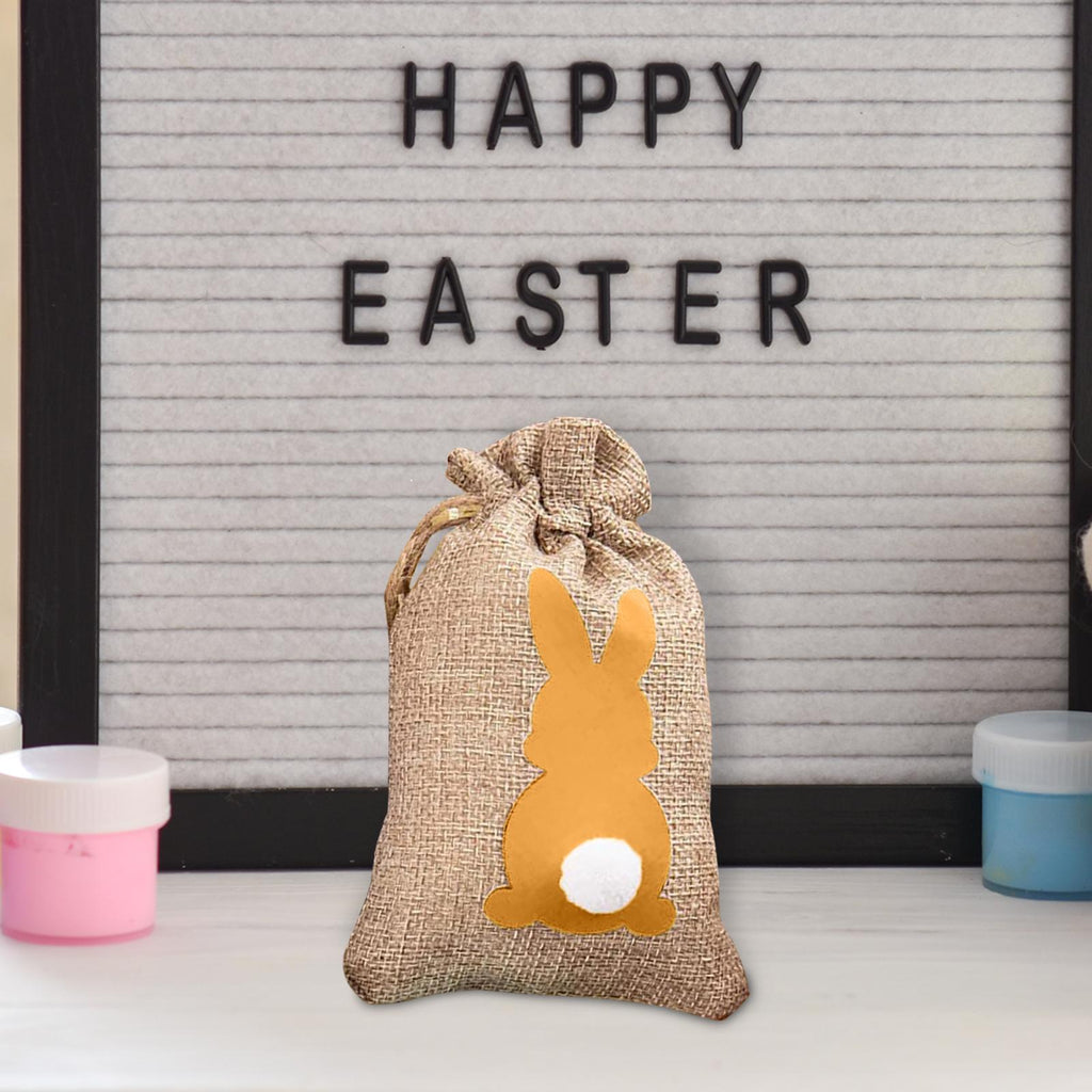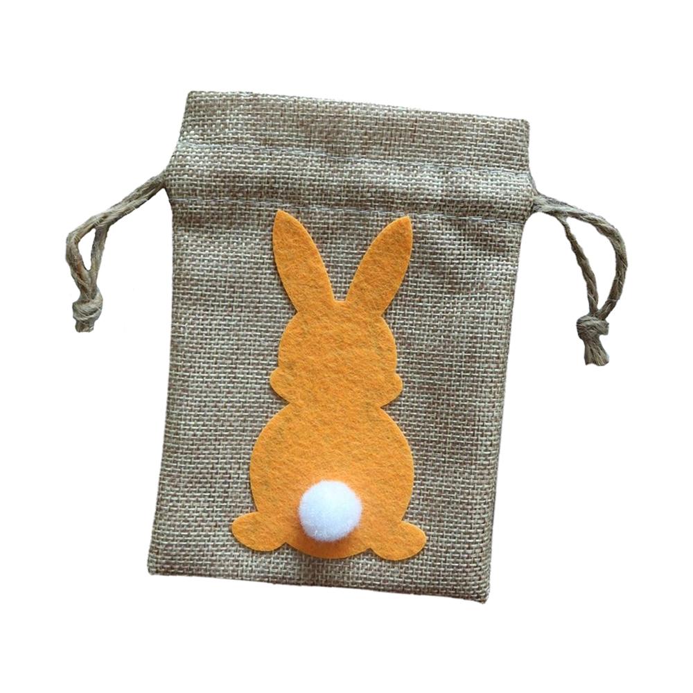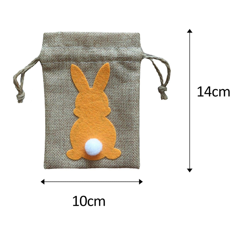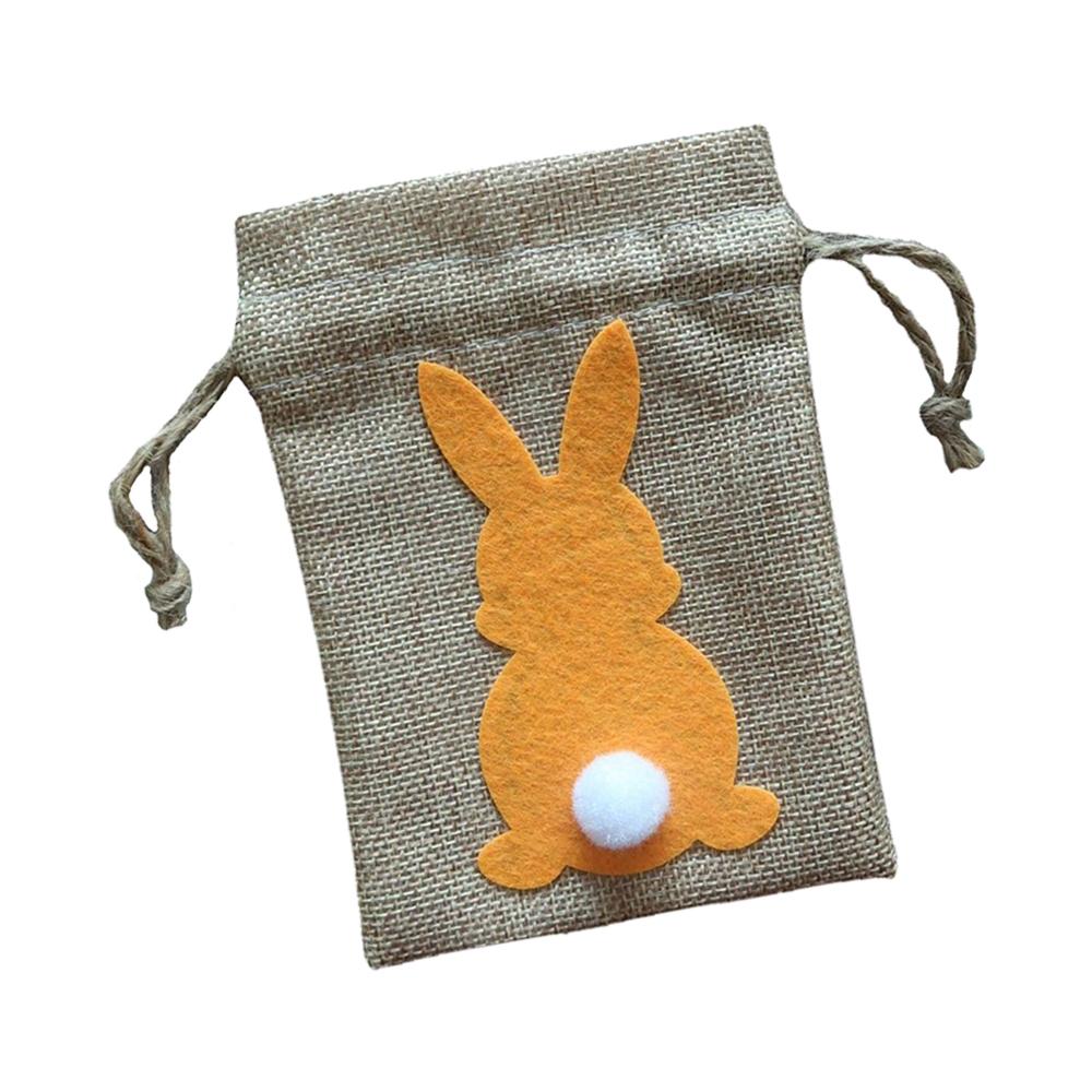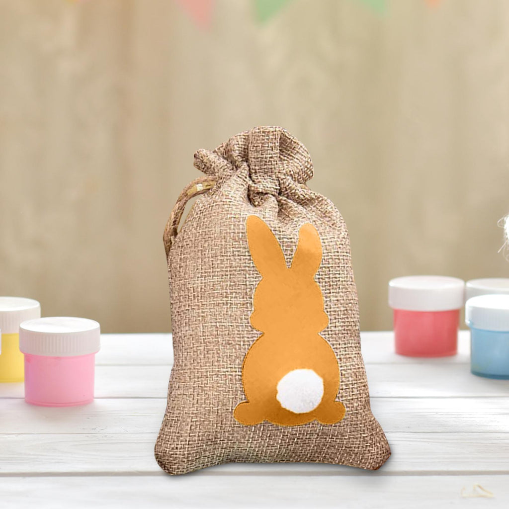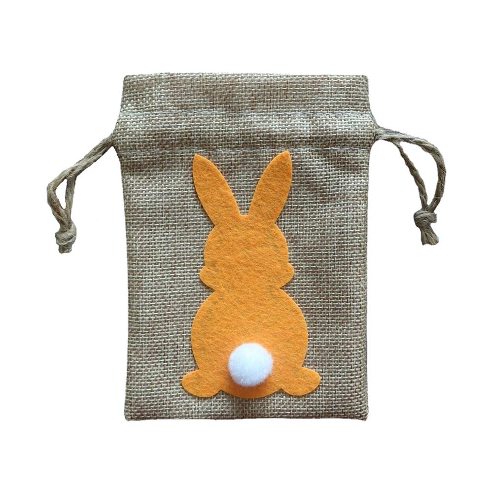 Maxbell Easter Bunny Decor Drawstring Burlap Bag 14x10cm Party Favors Reusable Orange