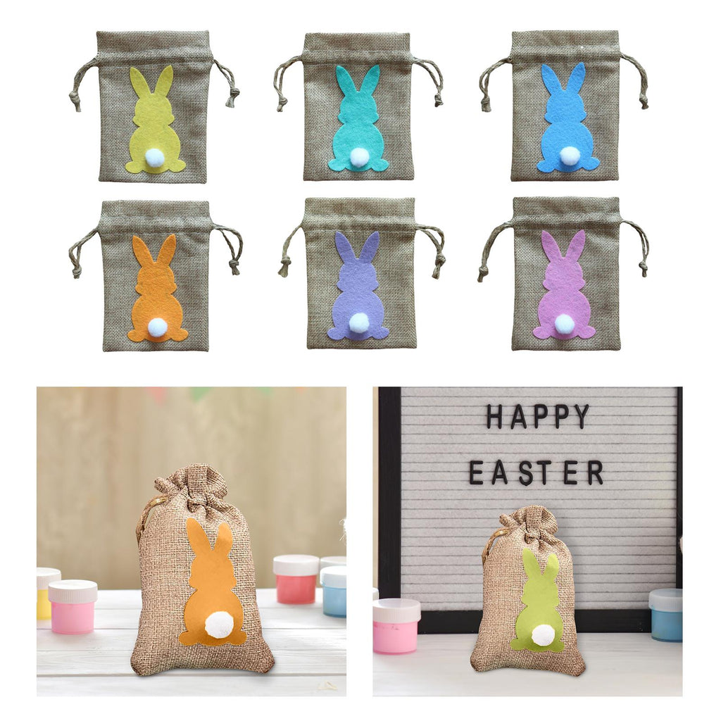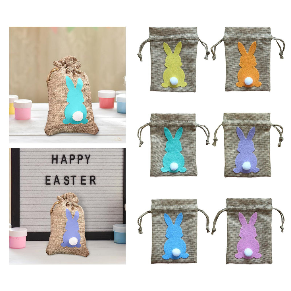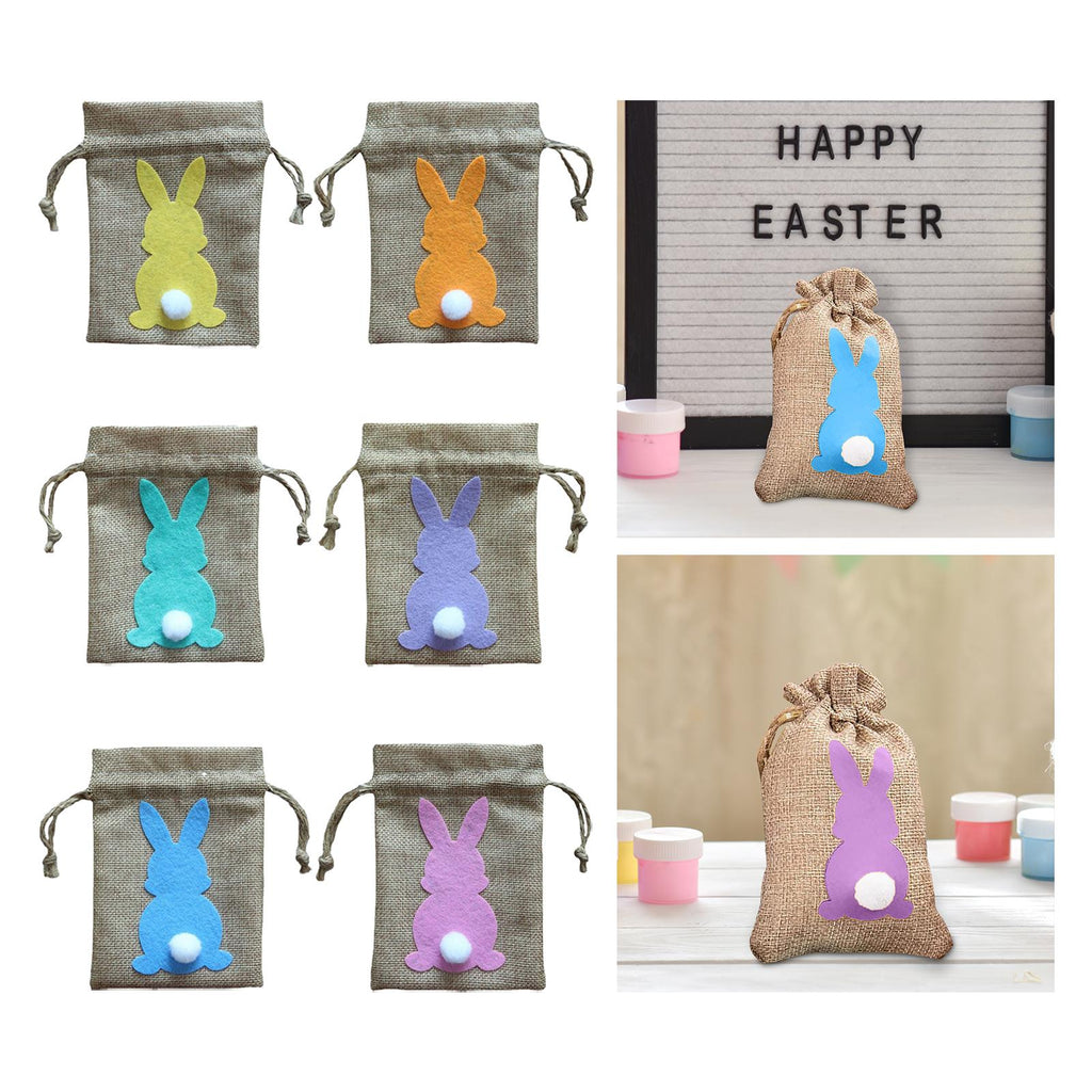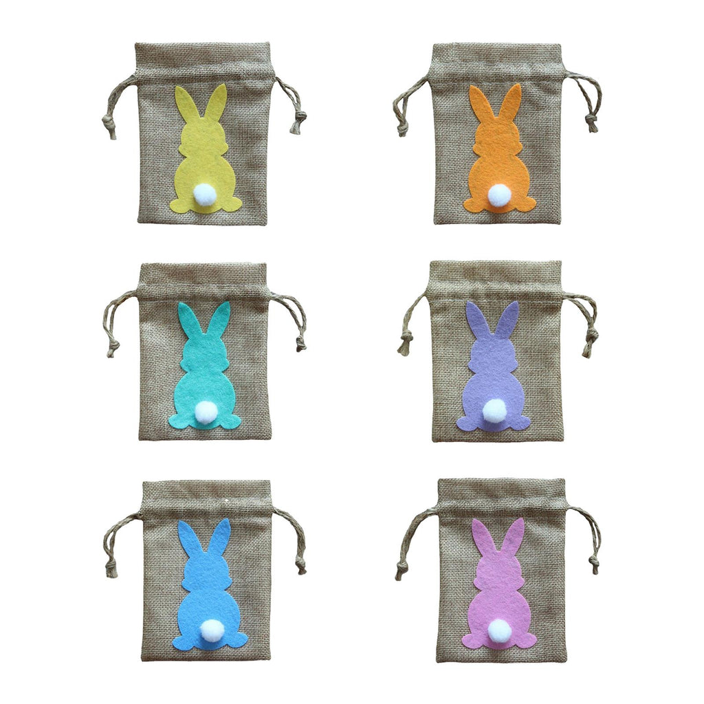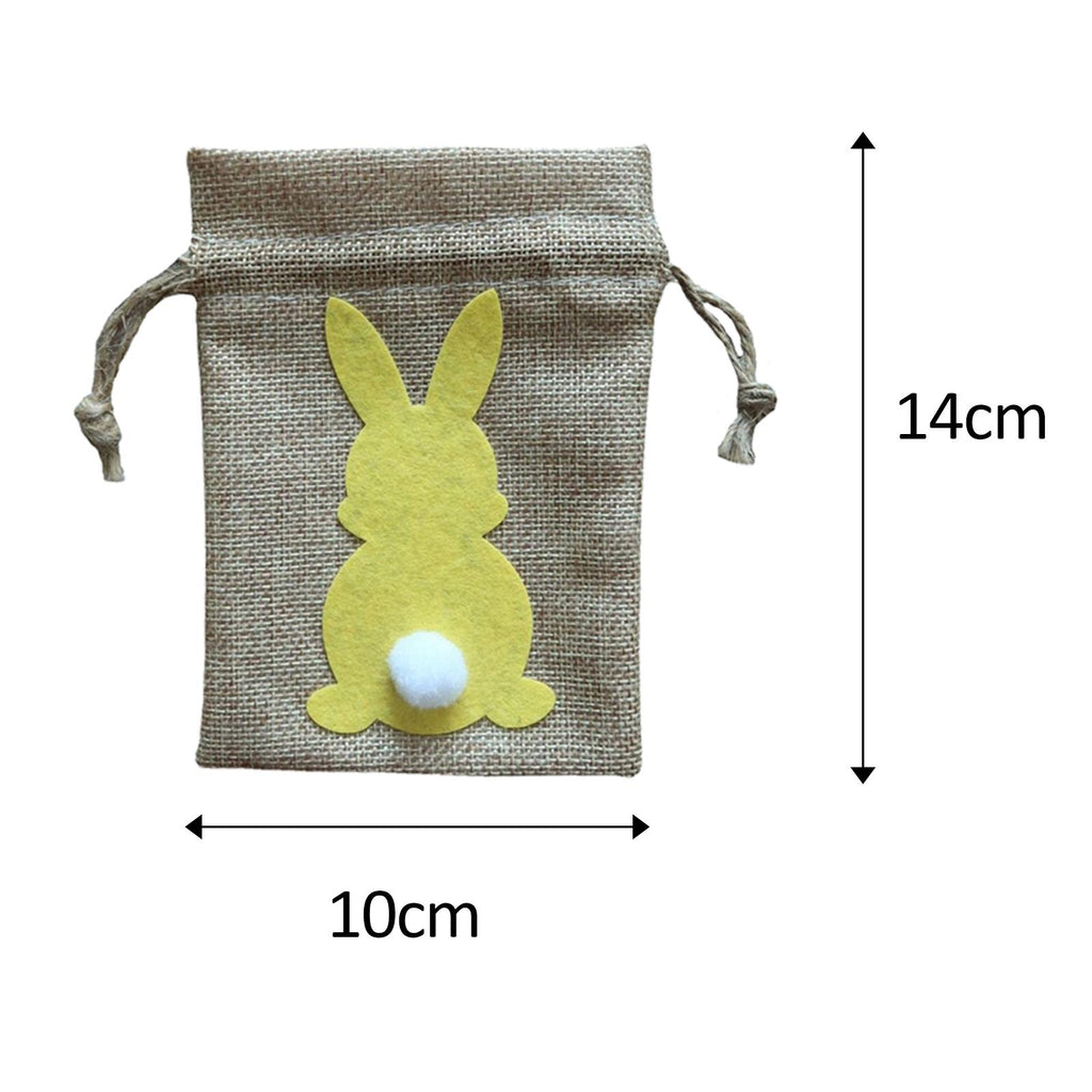 Maxbell Easter Bunny Decor Drawstring Burlap Bag 14x10cm Party Favors Reusable Yellow