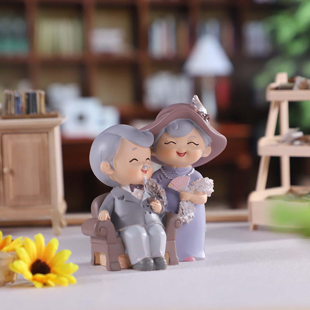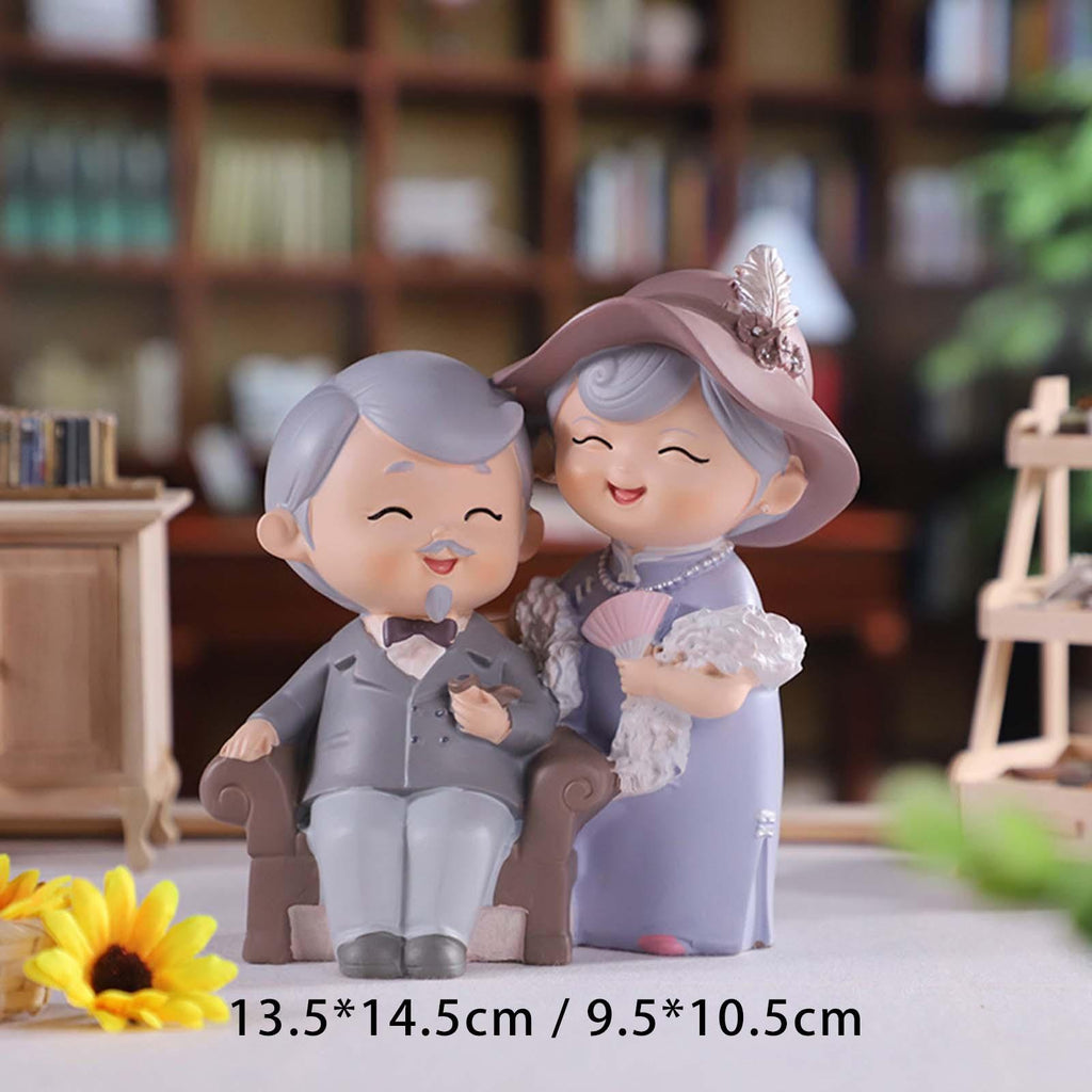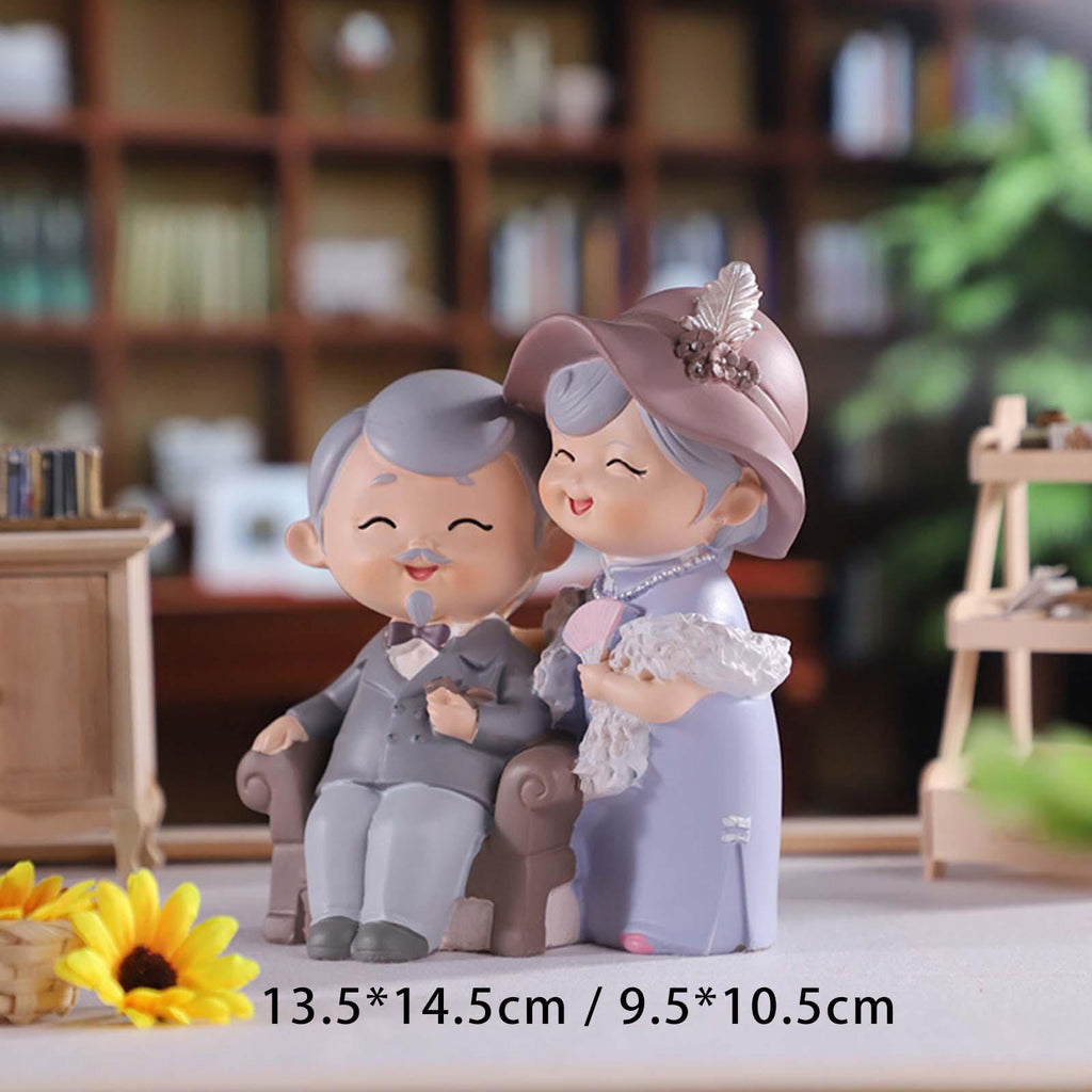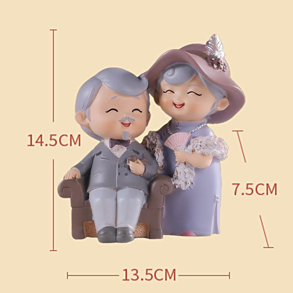 Maxbell Elderly Couple Figurines Handmade Statue for Old Age Wedding Decoration 13.5cmx7.5cmx14.5cm