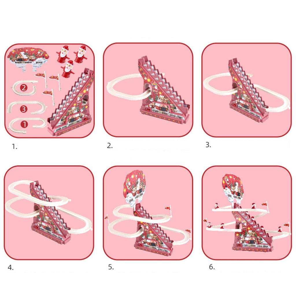 Unique Design: The Educational Music Slides Toy comes with flashing LED lights, which are easy to assemble. And there are cute santa sliding track on the stairs with cheerful music (with on off buttons).