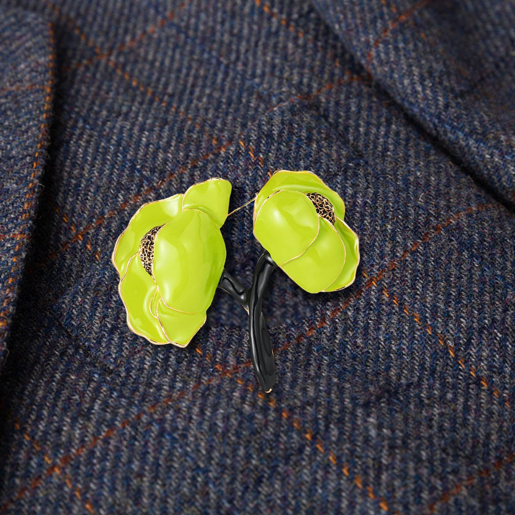 Maxbell Elegant Girls Woman Peony Flower Brooch Pin Bag Badge DIY Decoration Durable Green