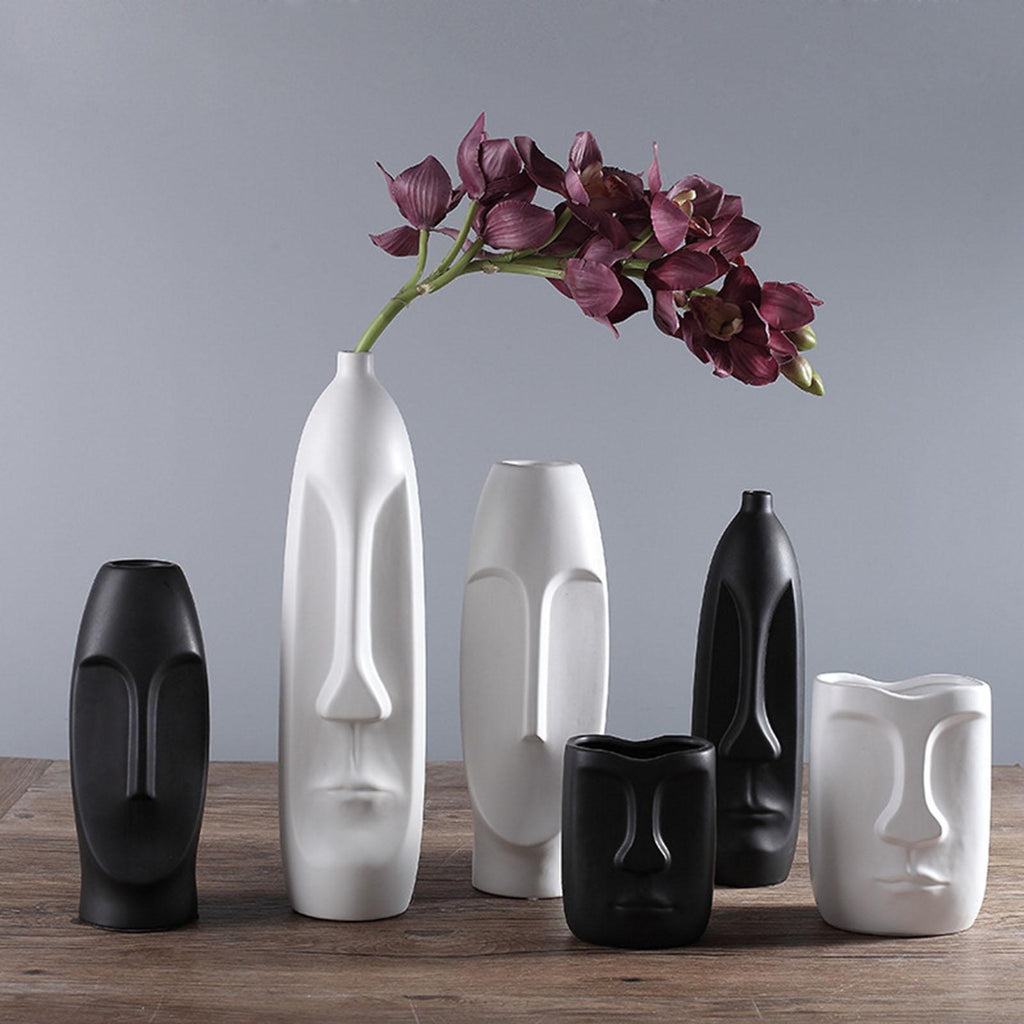 Maxbell Elegant Human Face Flower Vase Modern Sculpture for Living Room Decor Style A