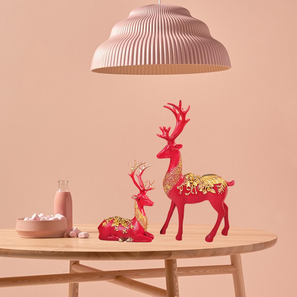 Maxbell Elk Statue Resin Crafts Figurine Sculpture Home Christmas Decors Red
