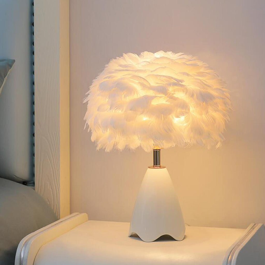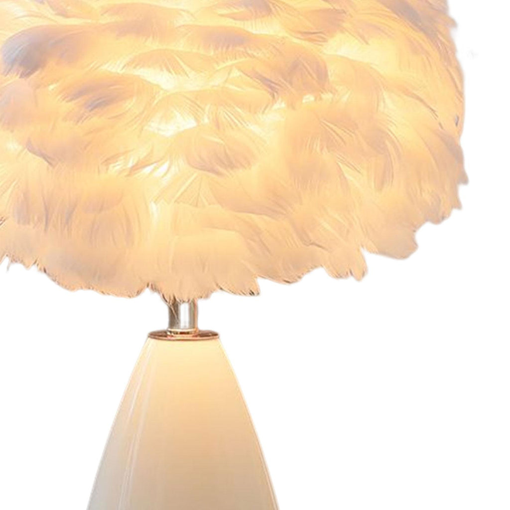 Maxbell Feather Shade Table Lamp Night Light NightStand Lamp for Bedside Decoration White