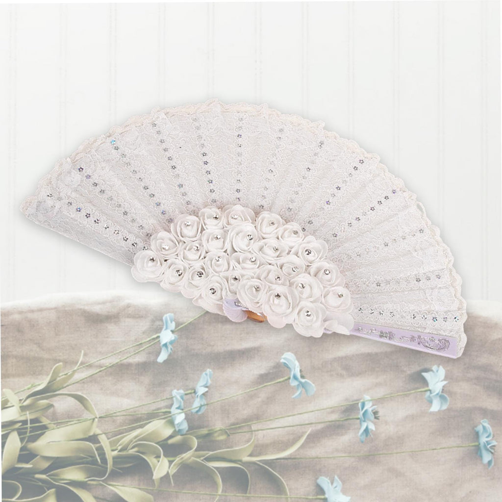 Maxbell Floral Hand Fans Church Wedding Fan Lace Fan for Handmade Decor