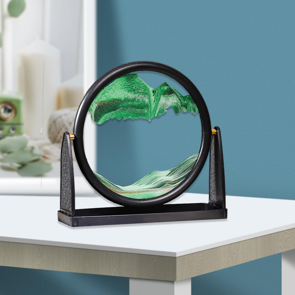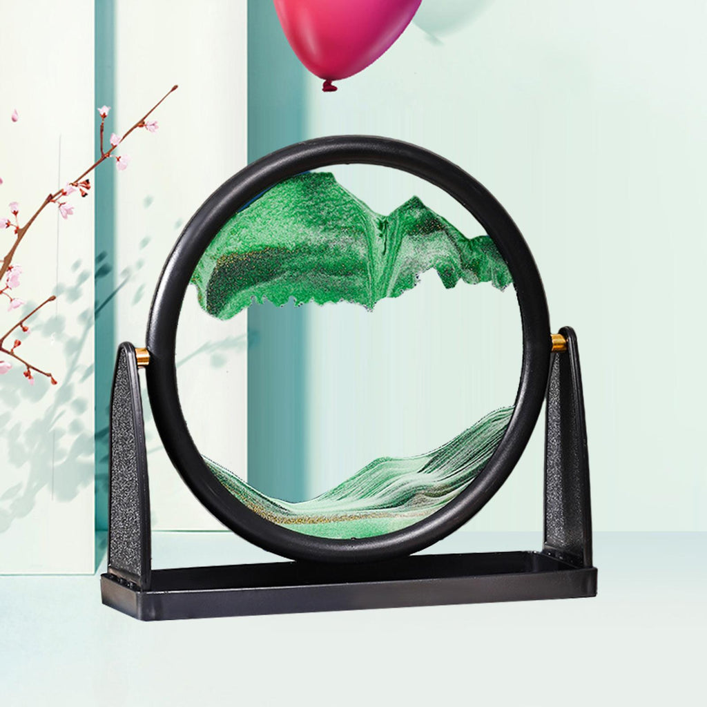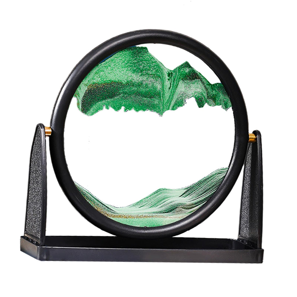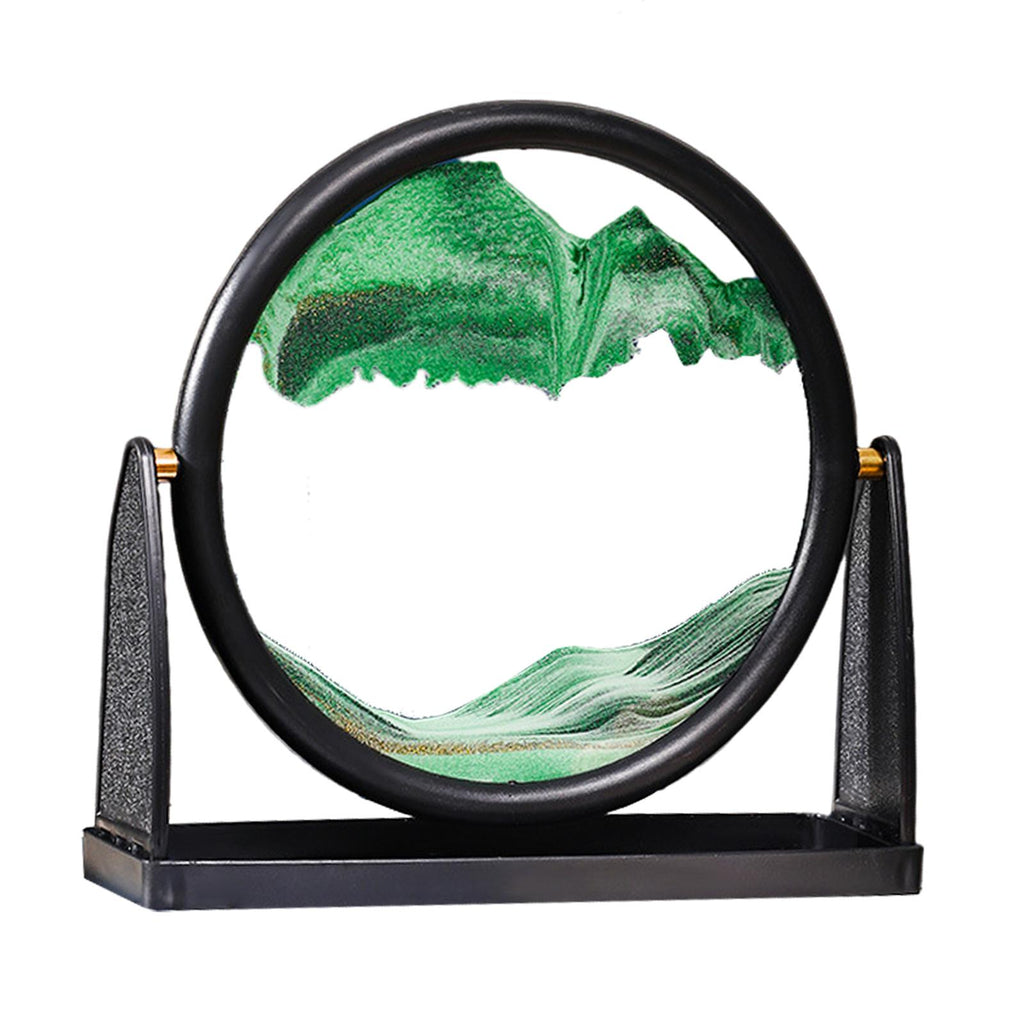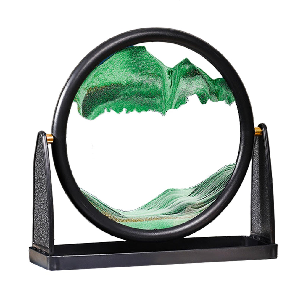 Maxbell Maxbell Flowing Sand Art Picture Round Glass 3D Deep Sea Sandscape Home Office Decor Green