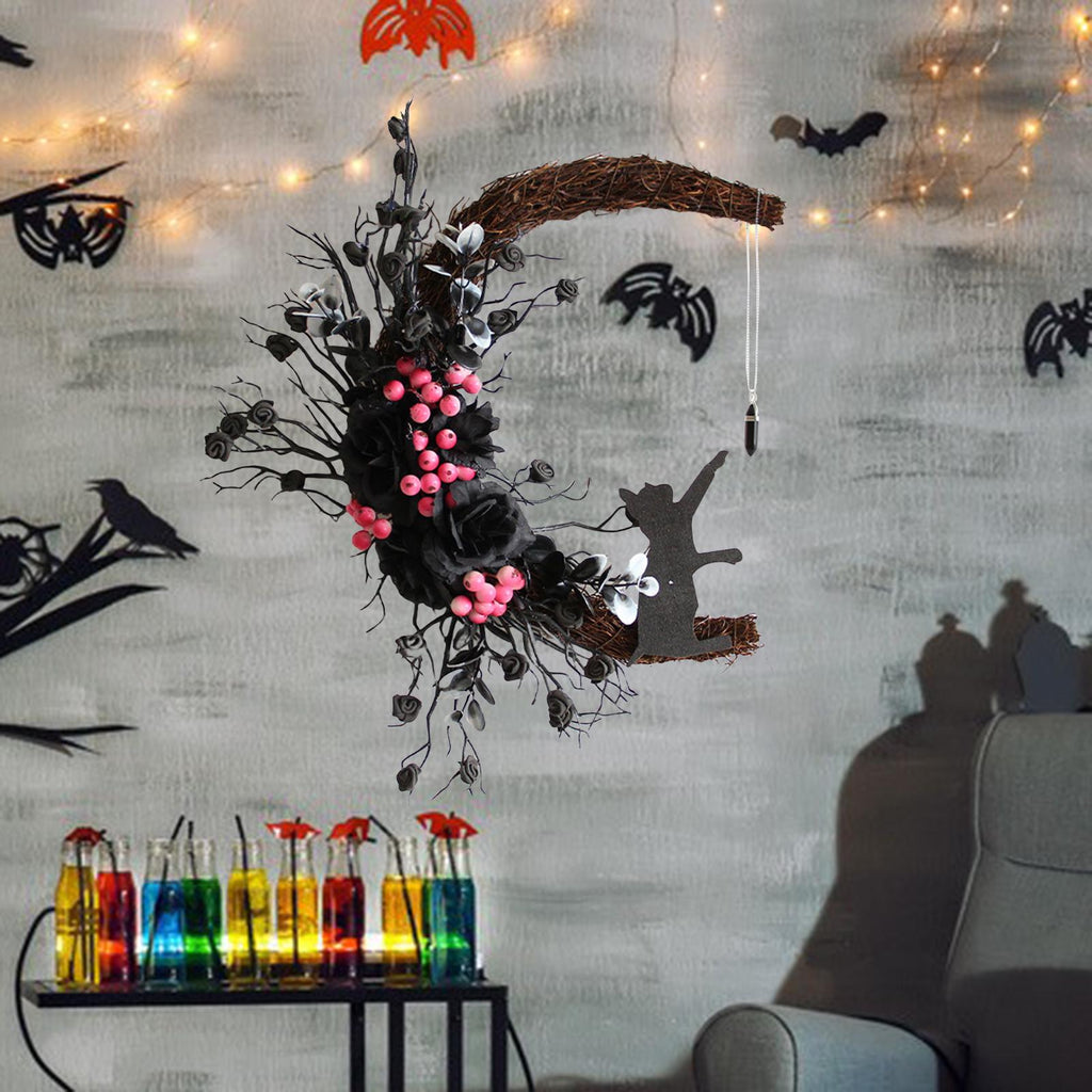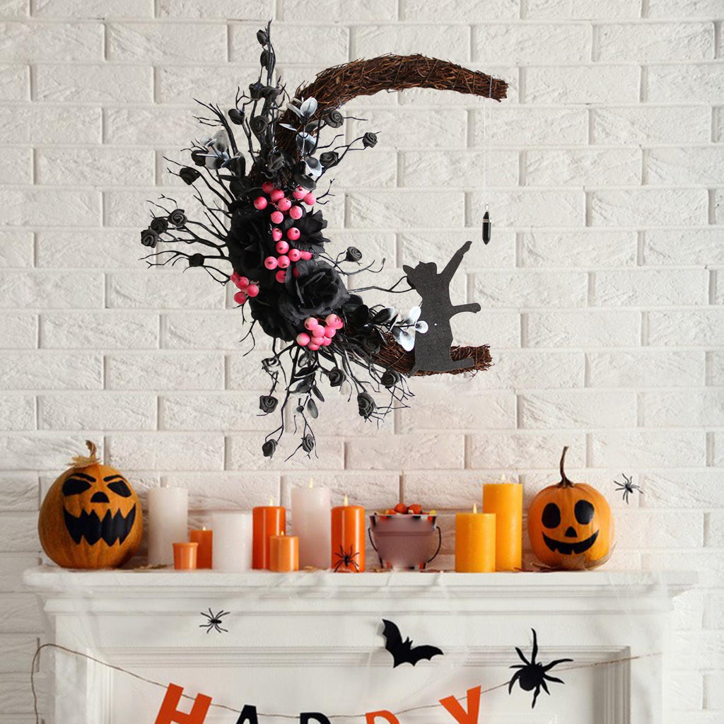 Maxbell Funny Cat Wreath Outside for Door Hanging Garland Fall Decorations Halloween