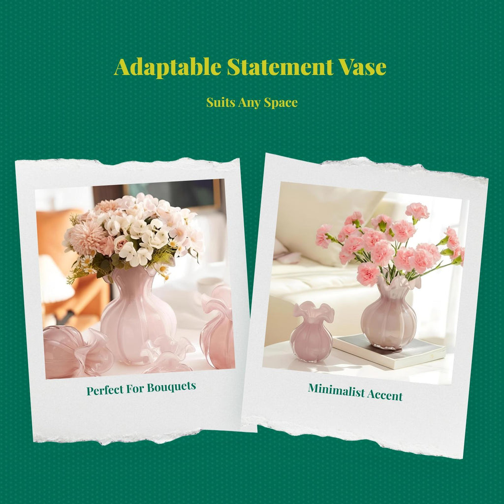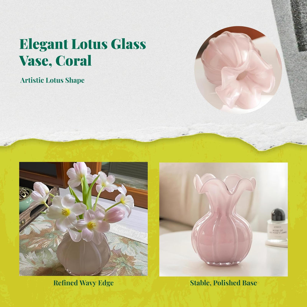 【Elegant Glass Vase for Modern Living Spaces】This pastel crystal-look glass vase adds a suggestion of sophistication to your living room, dining table, or office, making it a breathtaking centerpiece for real or dried flower arrangements.【High-Quality and sturdy Material】Crafted from glass and crystal-like materials, this vase combines durability with a luxurious appearance, making it perfect for commonplace home decoration.【Versatile Decorative Accent】perfect for coffee tables, shelves, entryways, and bedrooms, this stylish vase seamlessly blends with a variety of interior styles, including modern, minimalist, and European-inspired designs.【Practical and Functional Design】This vase is for brilliantly displaying flowers, creating distinctive centerpieces, or simply enriching your space with its artistic and creative shape.【Thoughtful Gift Choice】With its elegant coral color and fine craftsmanship, this glass vase is a wonderful gift for housewarmings, weddings, or special events.Specification: