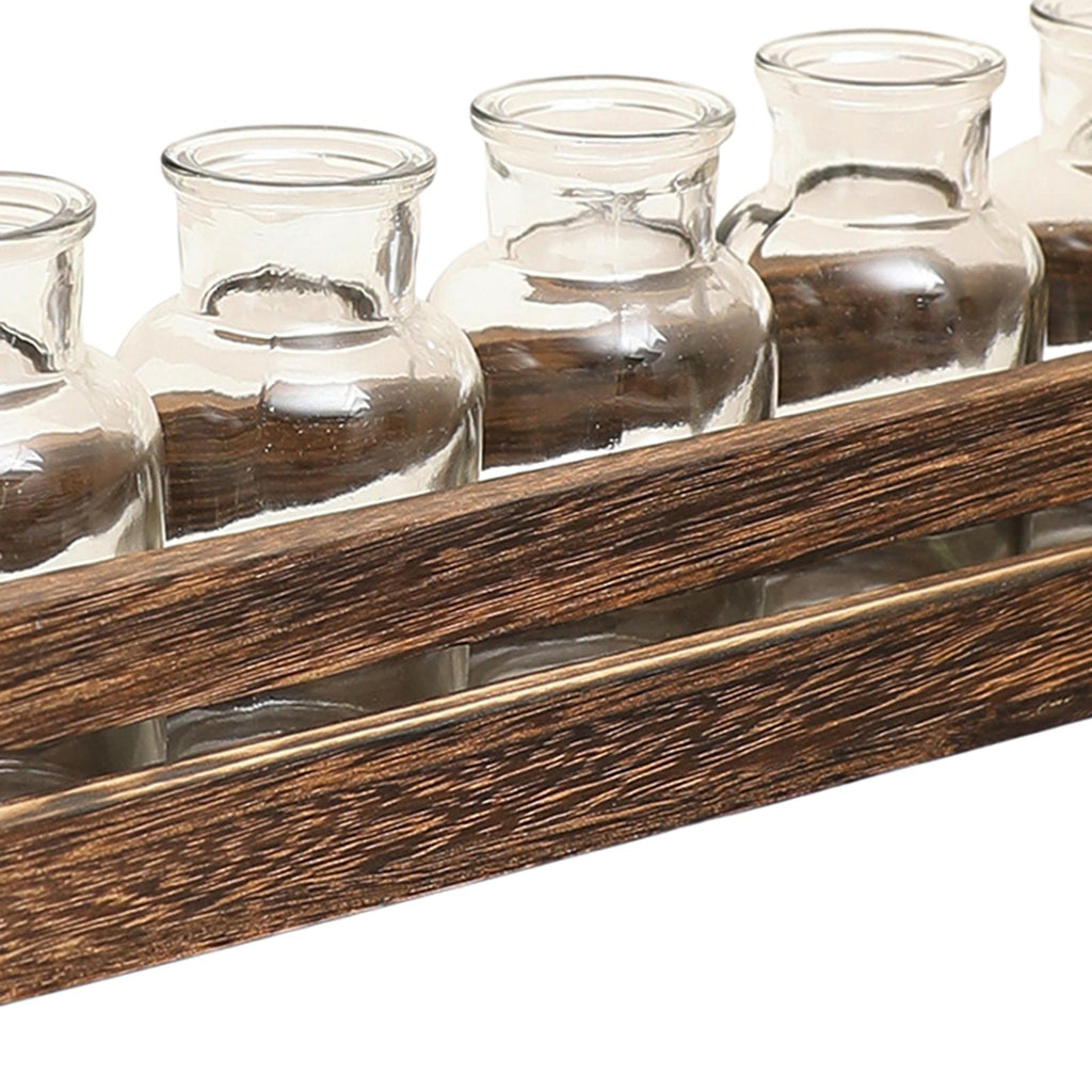 - Material: The vase is made of high quality glass, and the frame is made of durable wood, sturdy, and waterproof.