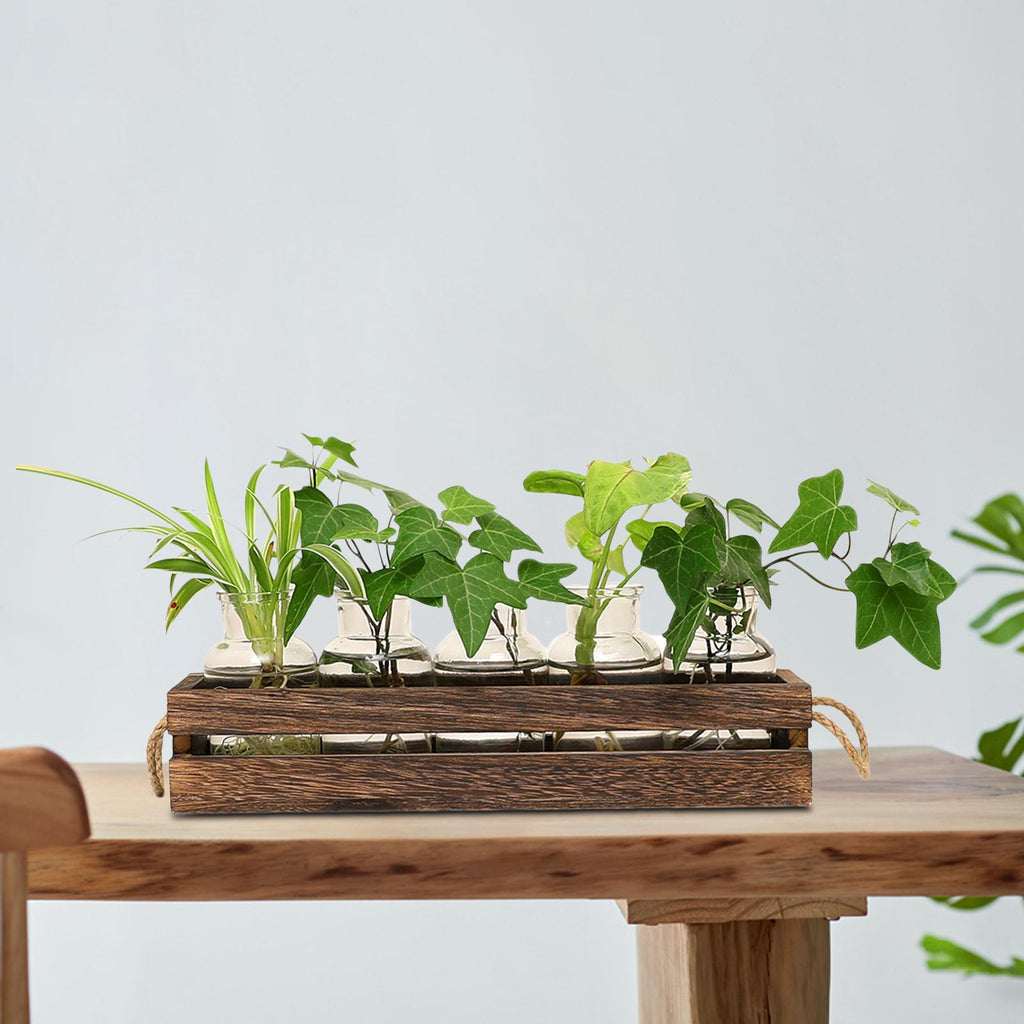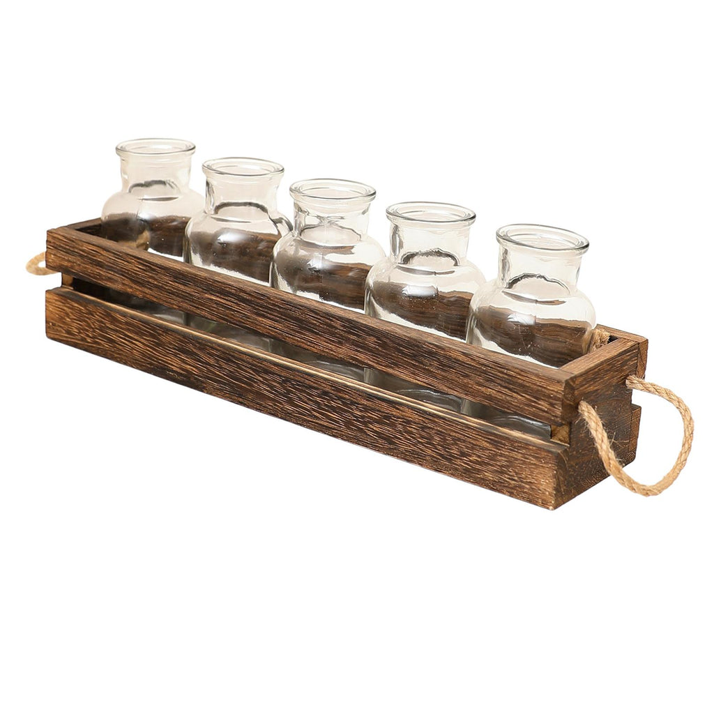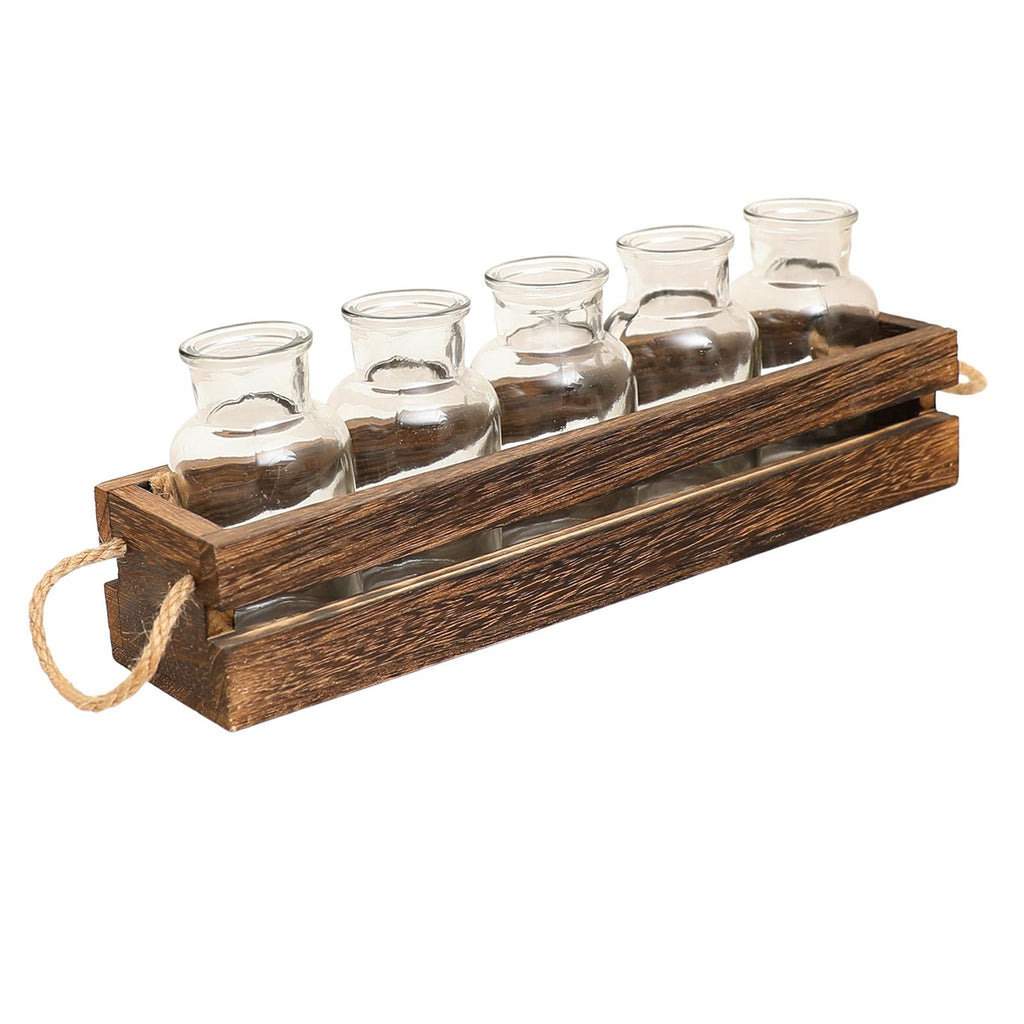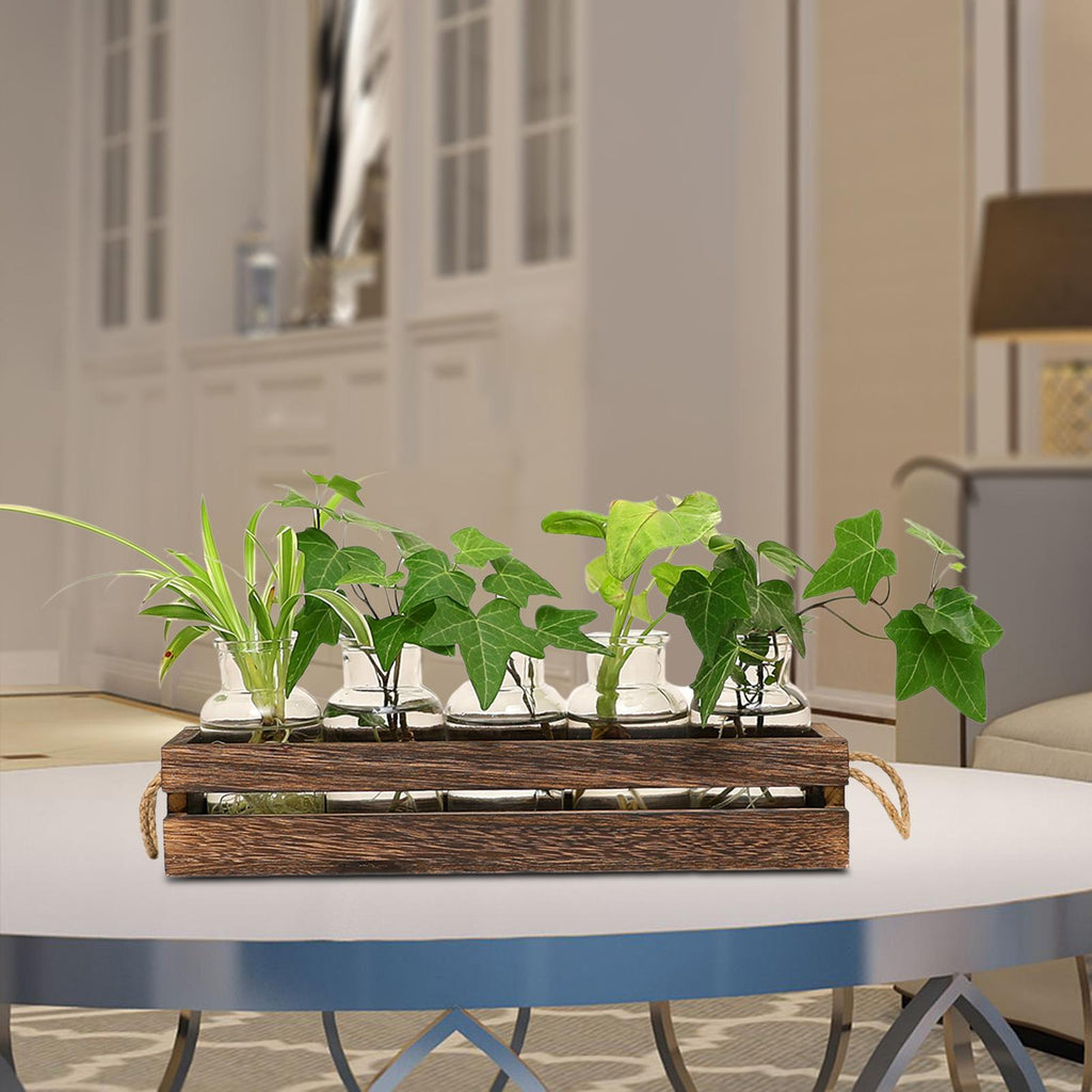 - Design: This planter frame set has 5 bottles and 1 wooden base, more stable, and easy to clean.