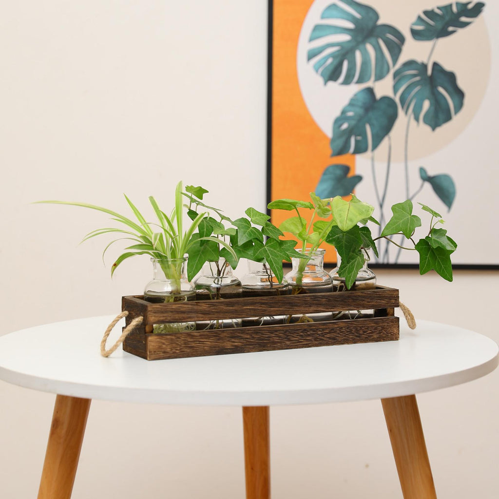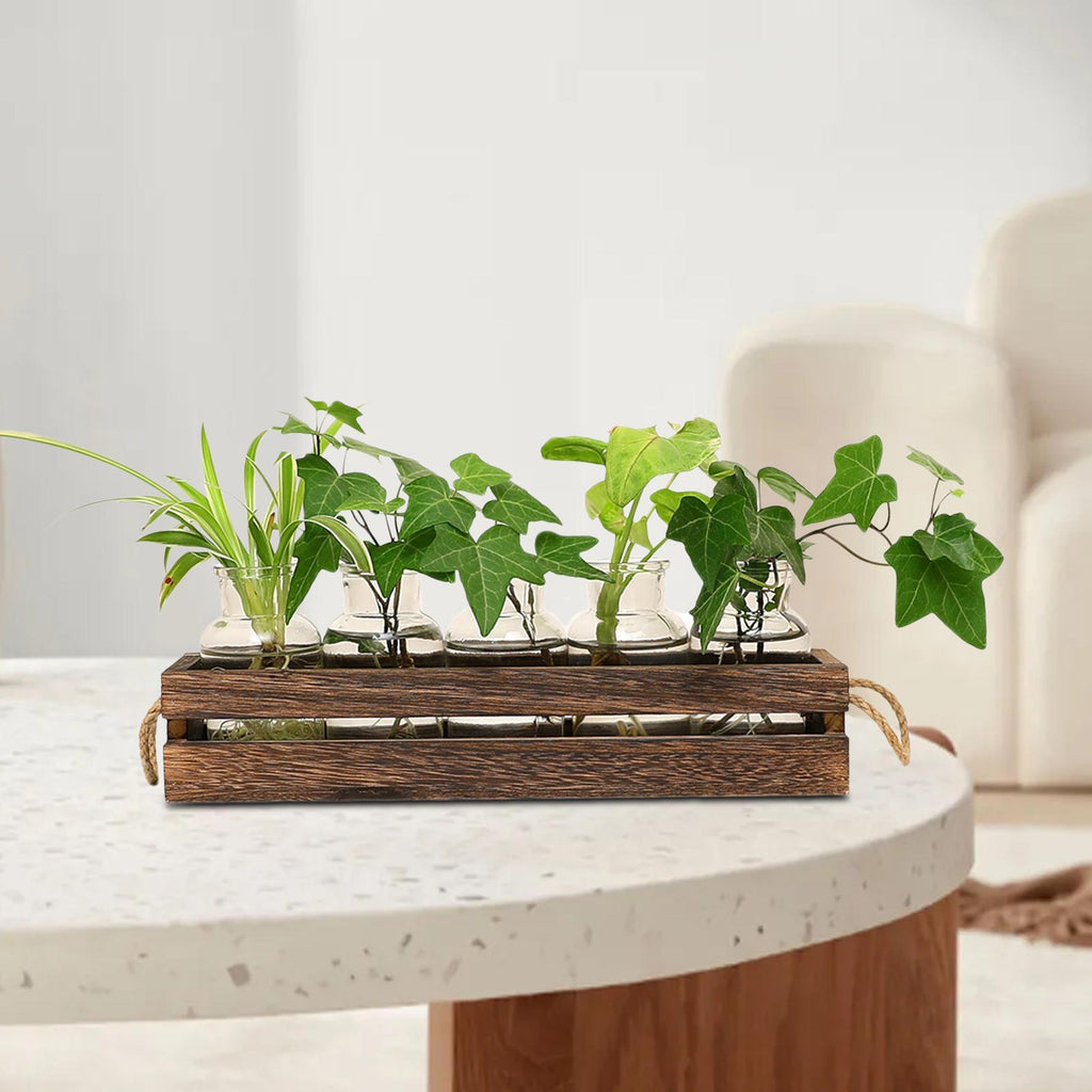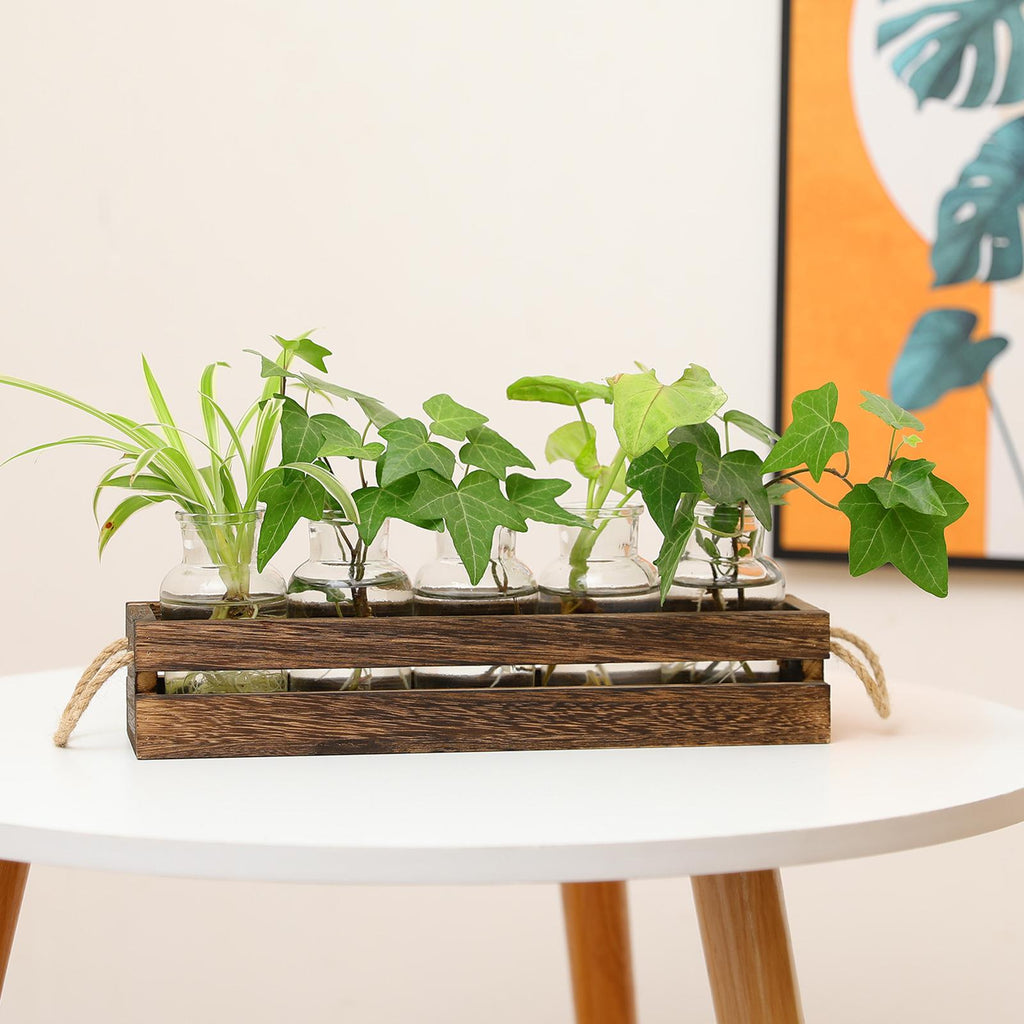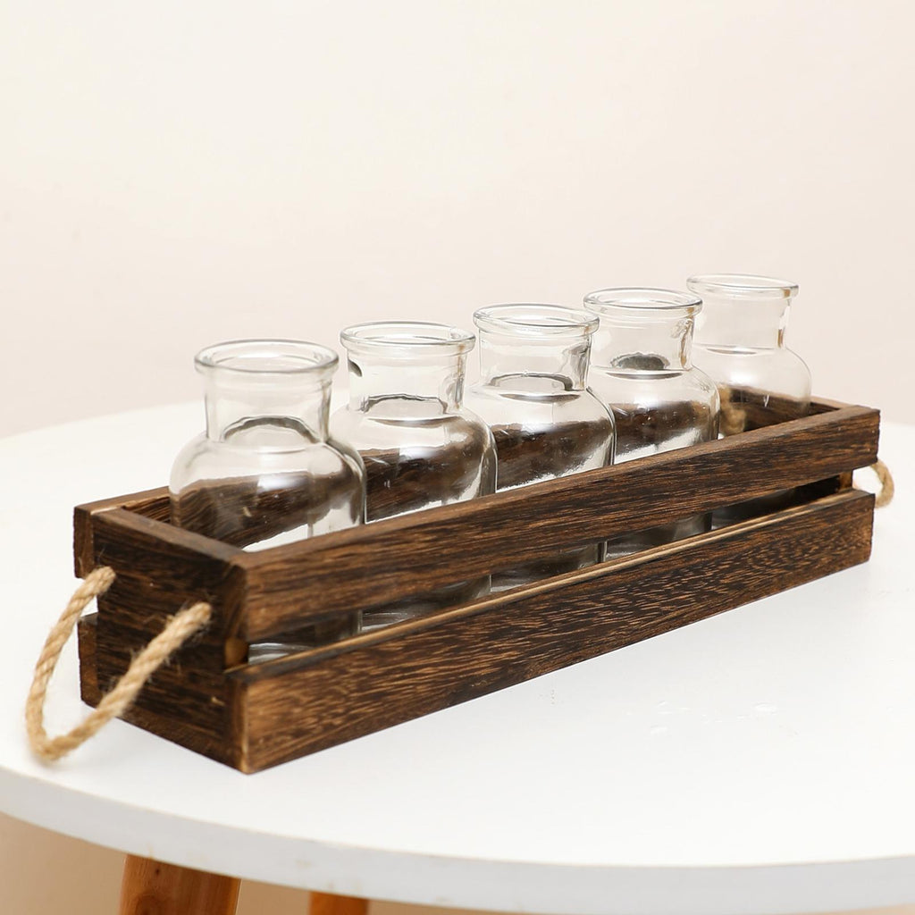 - Design: This planter frame set has 5 bottles and 1 wooden base, more stable, and easy to clean.