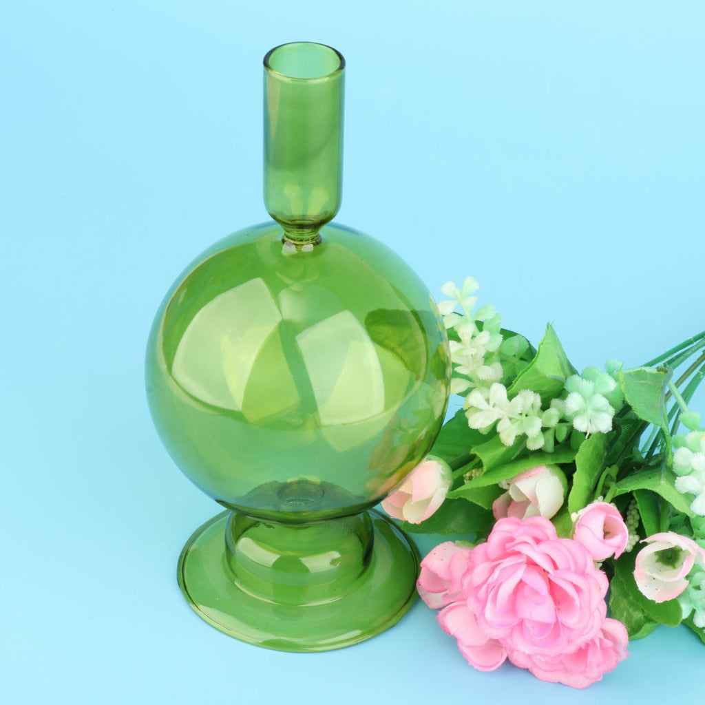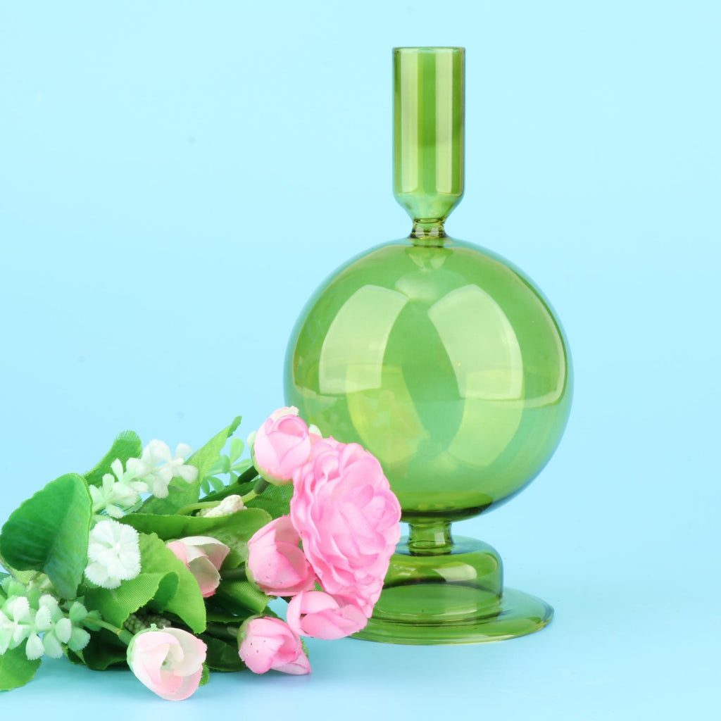 Maxbell Maxbell Green Glass Taper Candle Holders Centerpiece Clear Candlestick Holders Decor