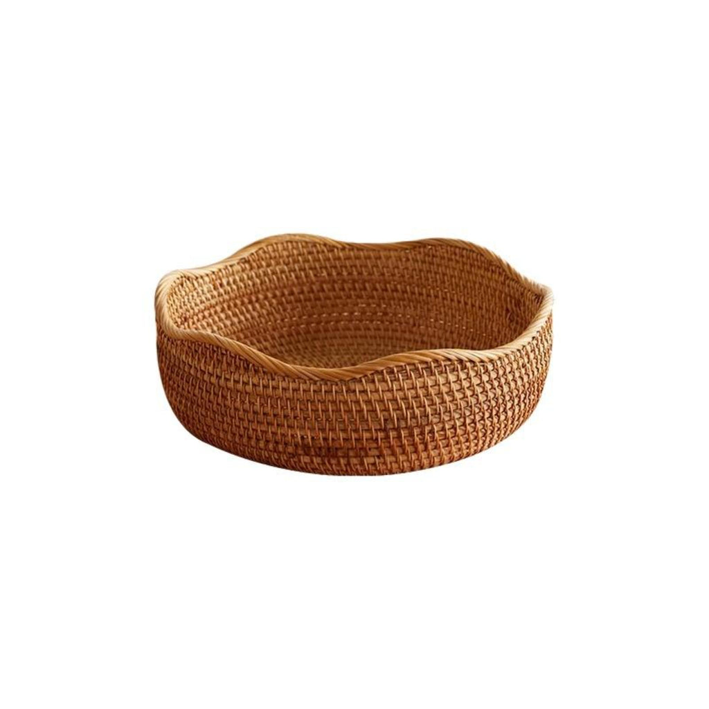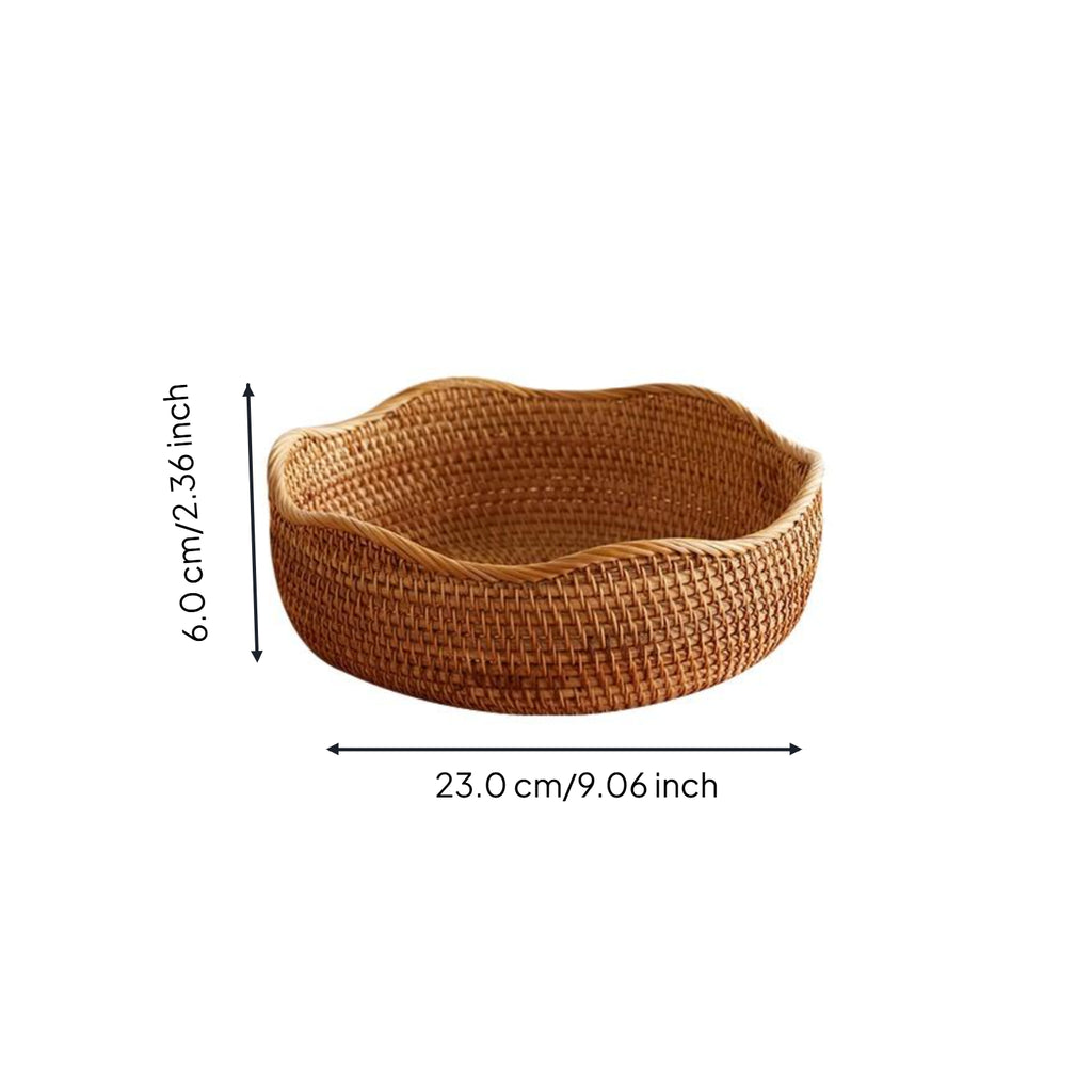 Hand-Woven Rattan Basket, Storage Organizer, Kitchen, Living Room, Decorative Wavy Edge S 23x6cm Brown