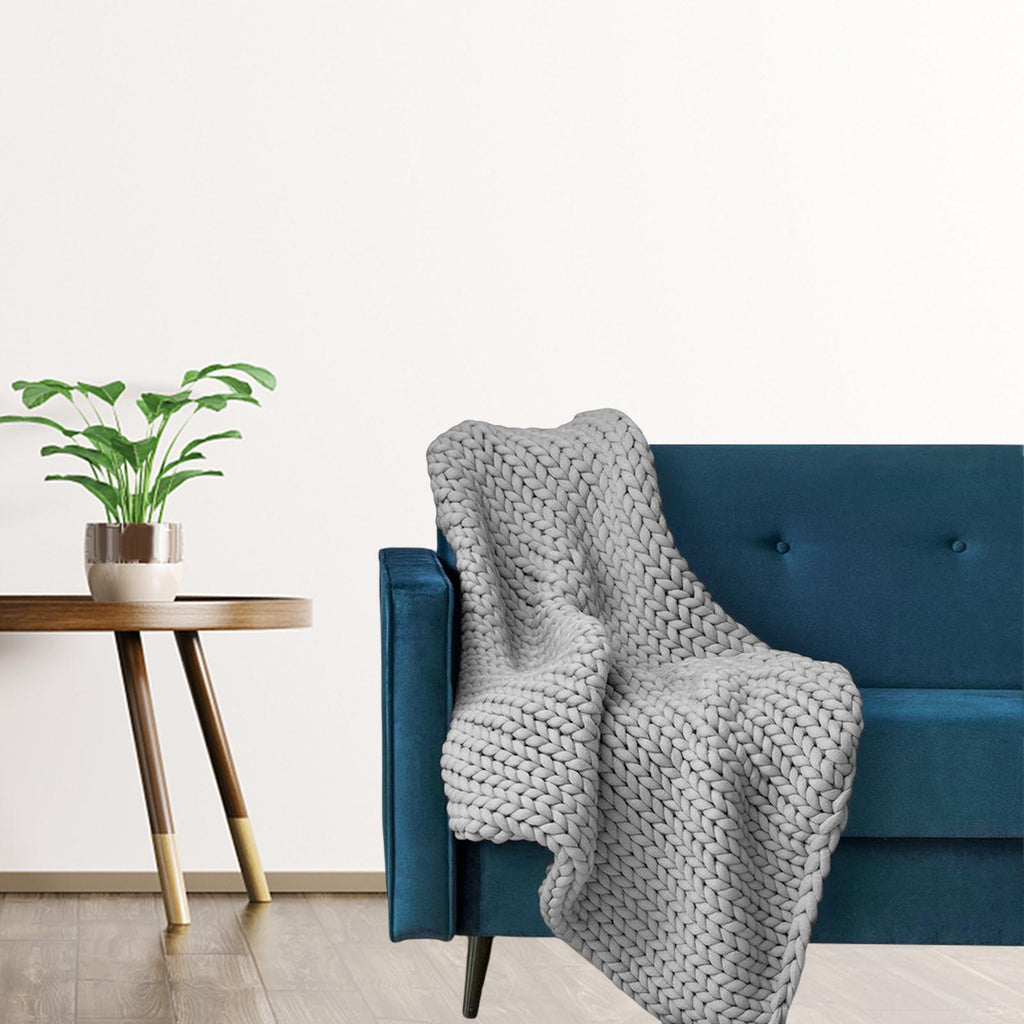 Maxbell Handmade Chunky Knit Blanket Knitted Blanket for Living Room Bedroom Decor Gray