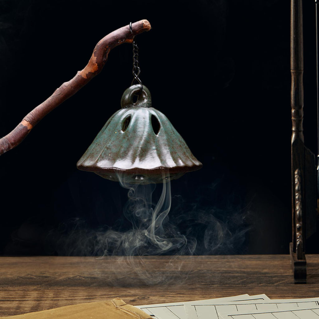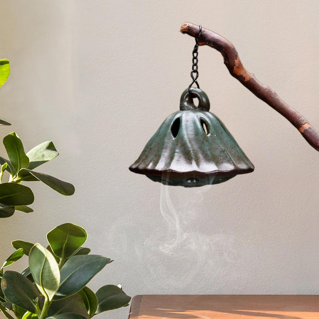 Maxbell Hanging Incense Burner Incense Cones Holder Accent Incense Coil Censer Decor 9.8x7.8cmRetro Green