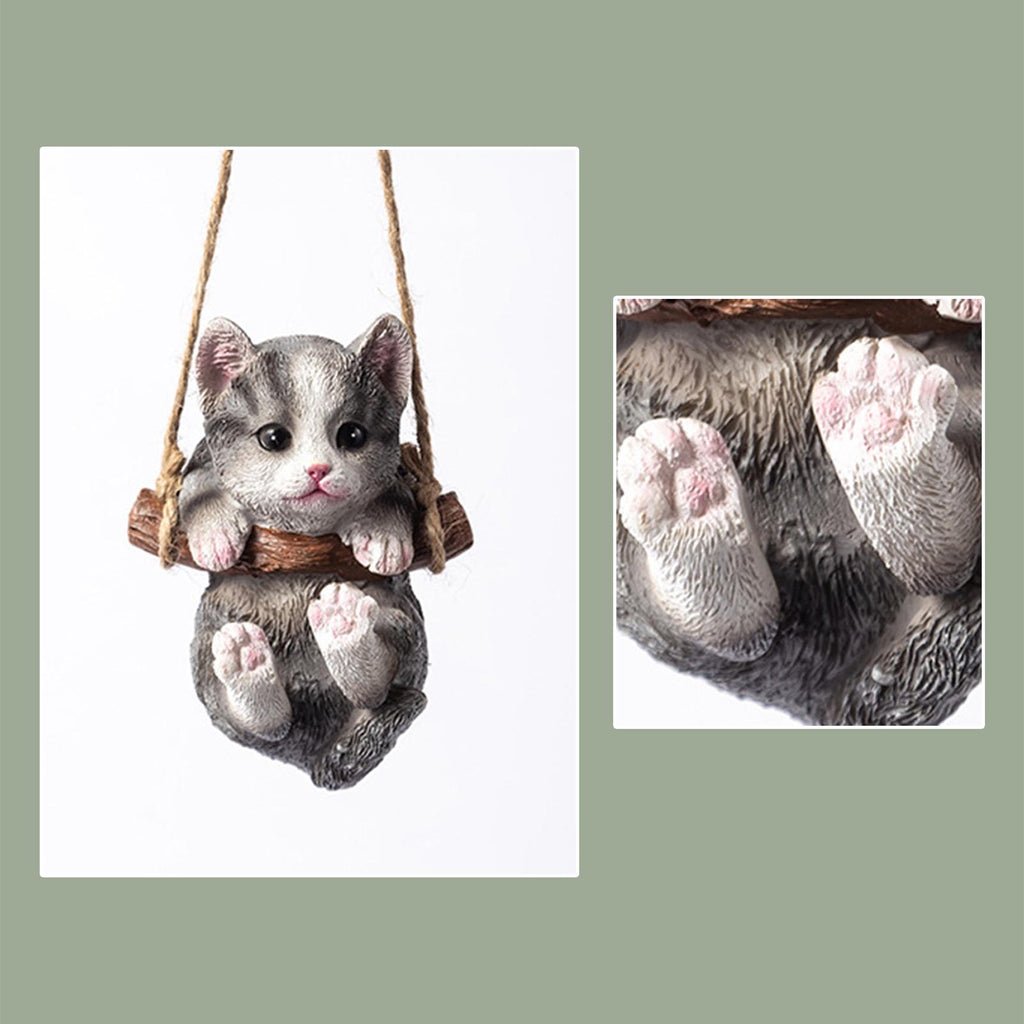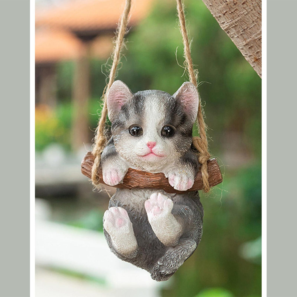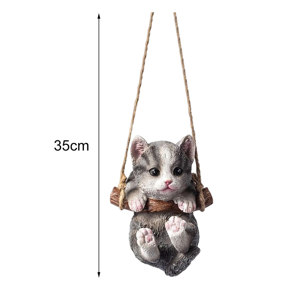 Maxbell Maxbell Hanging Swing Cat Statue Garden Figurine Pendant Decorative for Bedroom Home Gray