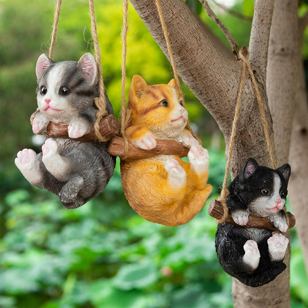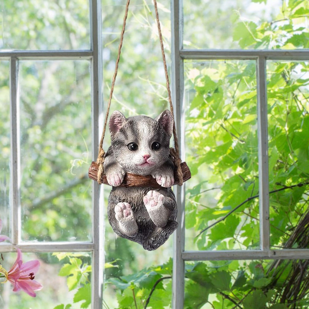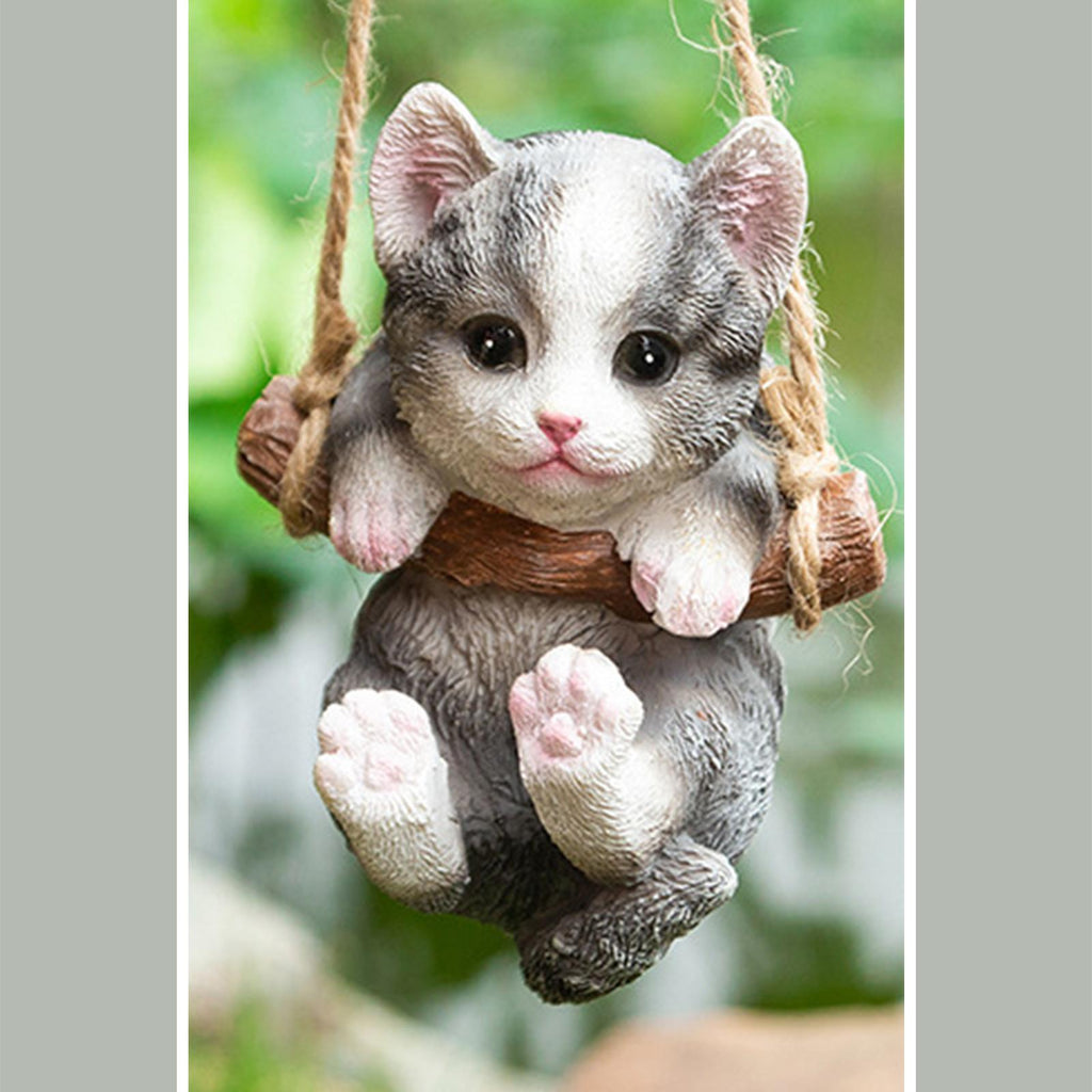 Maxbell Maxbell Hanging Swing Cat Statue Garden Figurine Pendant Decorative for Bedroom Home Gray