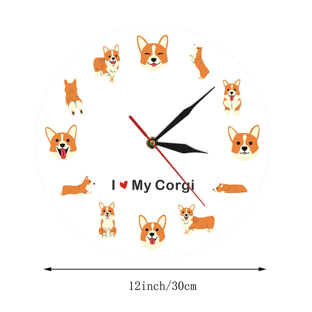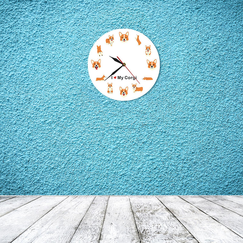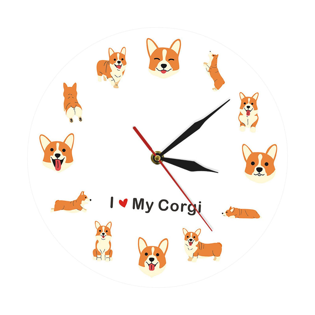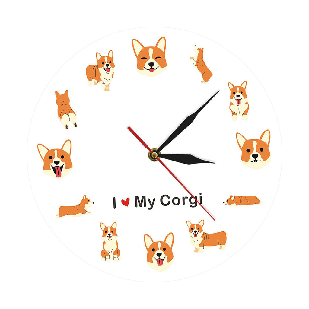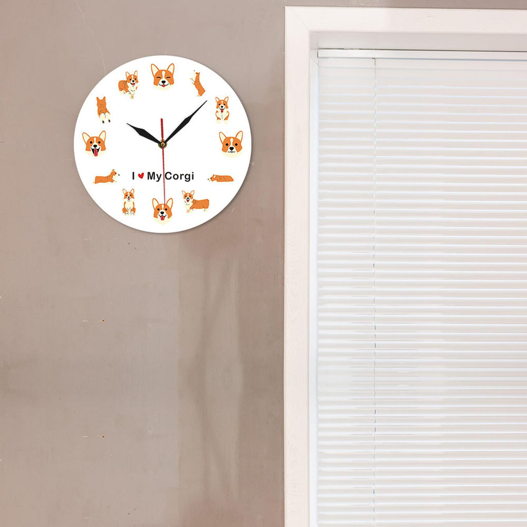 Hanging Wall Clock Home Decor Corgi Theme for Dining Room Living Room Office
