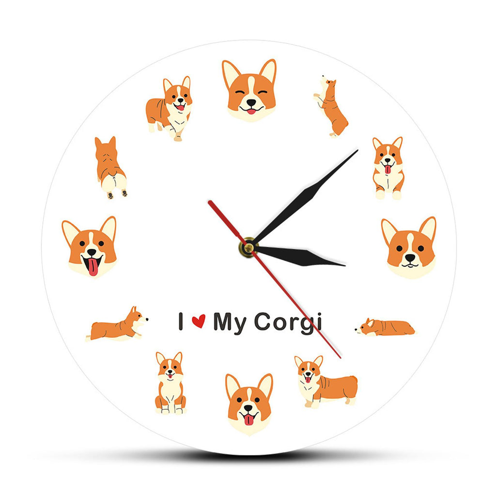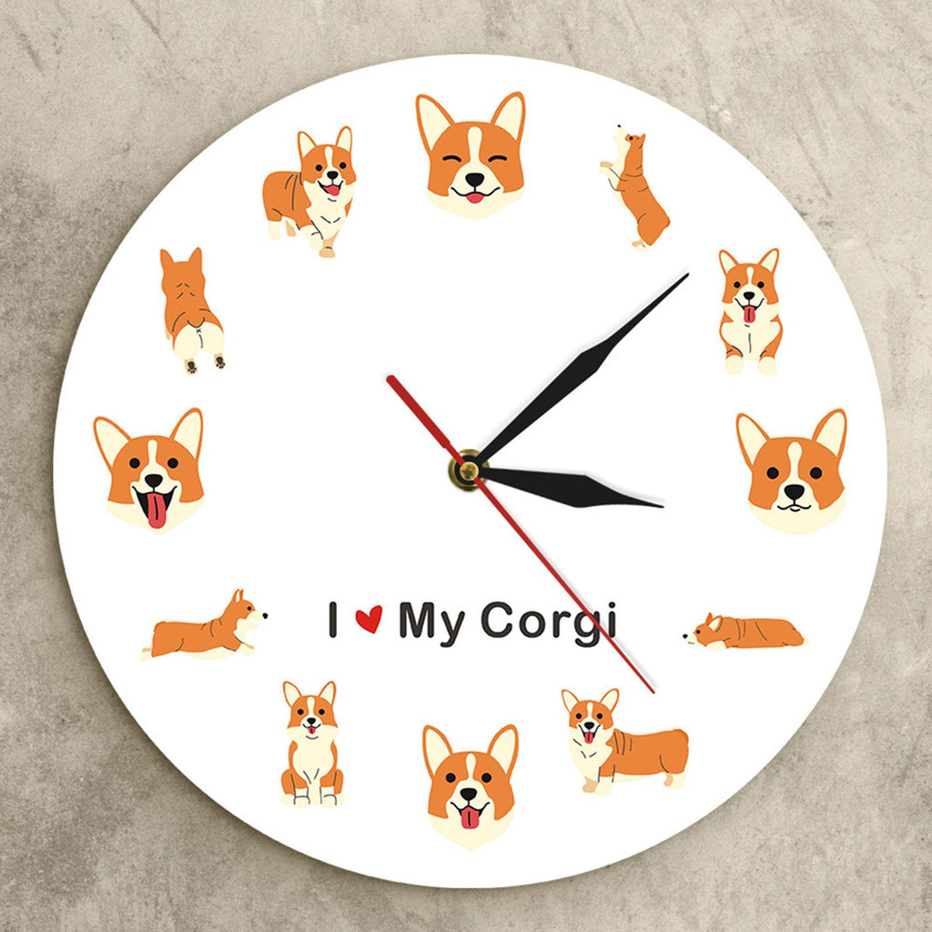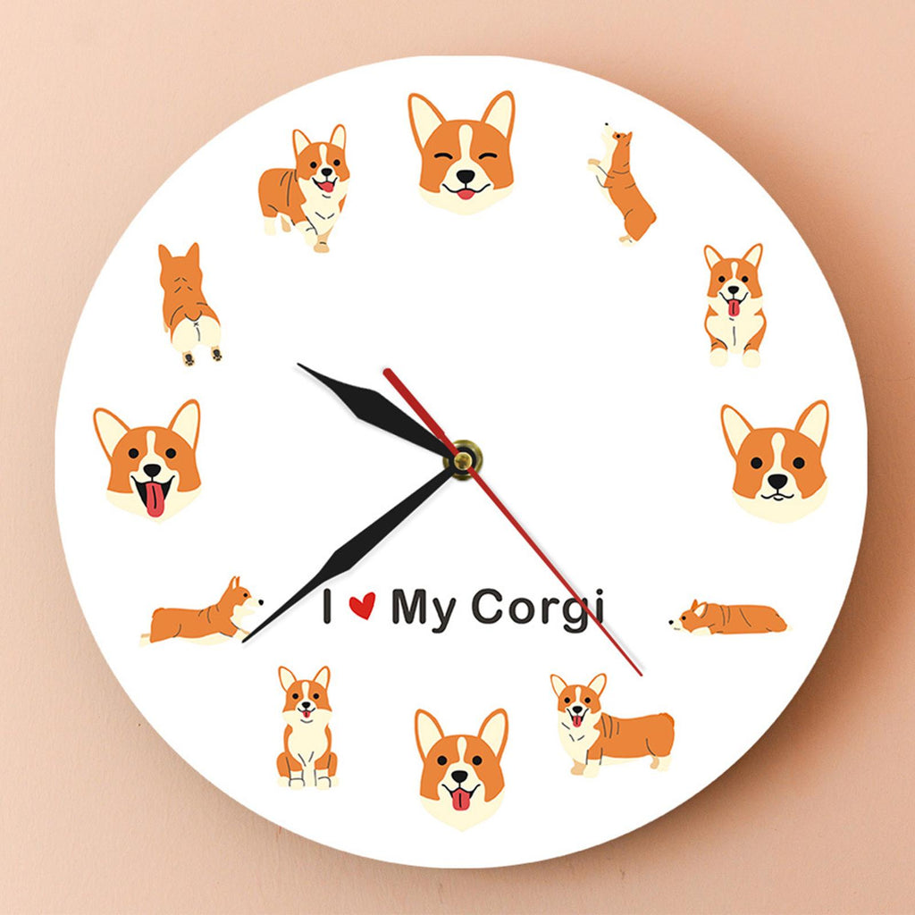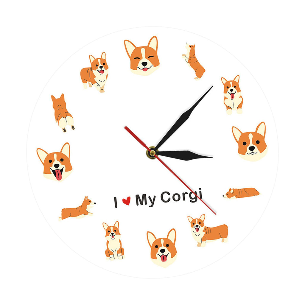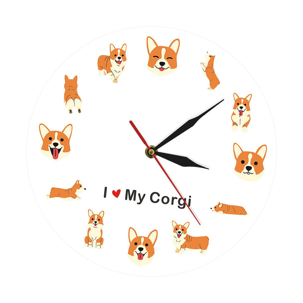 Hanging Wall Clock Home Decor Corgi Theme for Dining Room Living Room Office