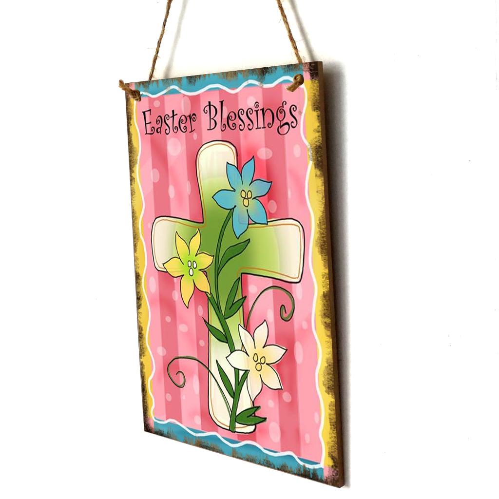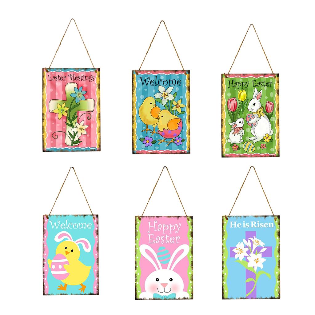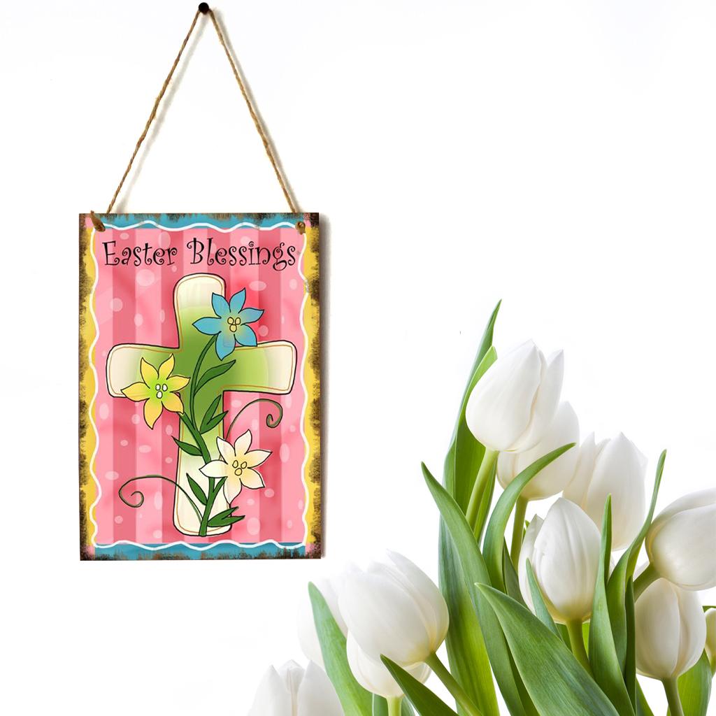 Maxbell Happy Easter Hanging Ornament Spring Bunny Plaque Party Door Home Decoration Cross 1