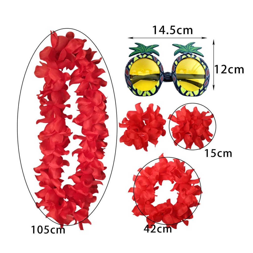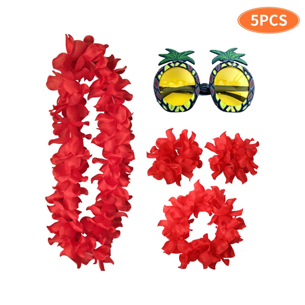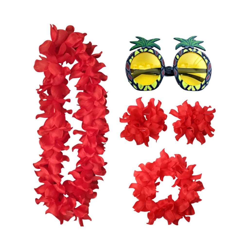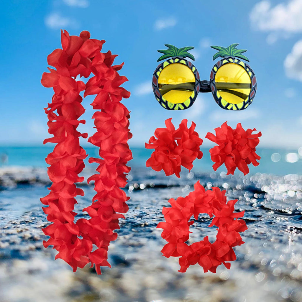 Maxbell Hawaiian Necklace Costume Set Beach Womens Fancy Dress Dress Decor Headband Red