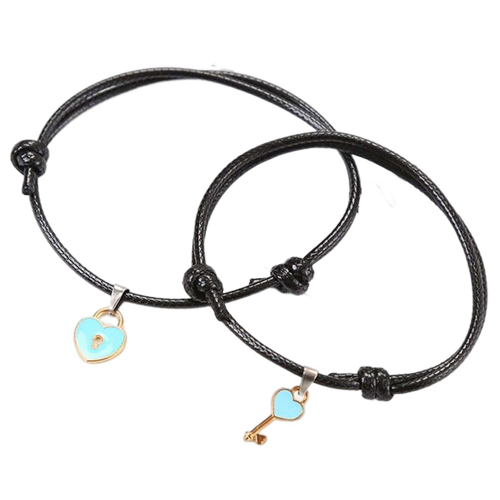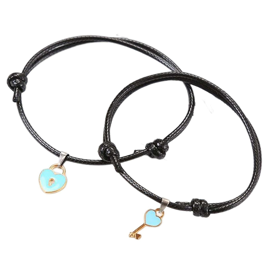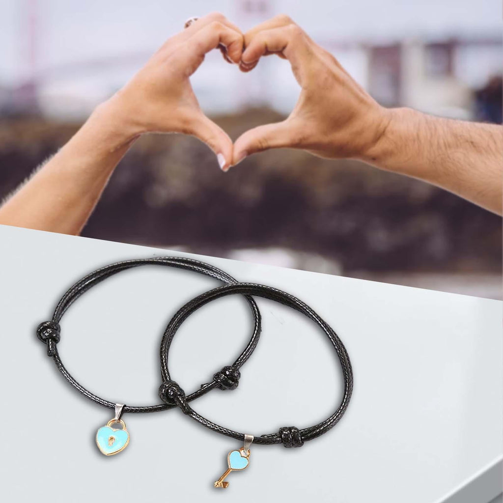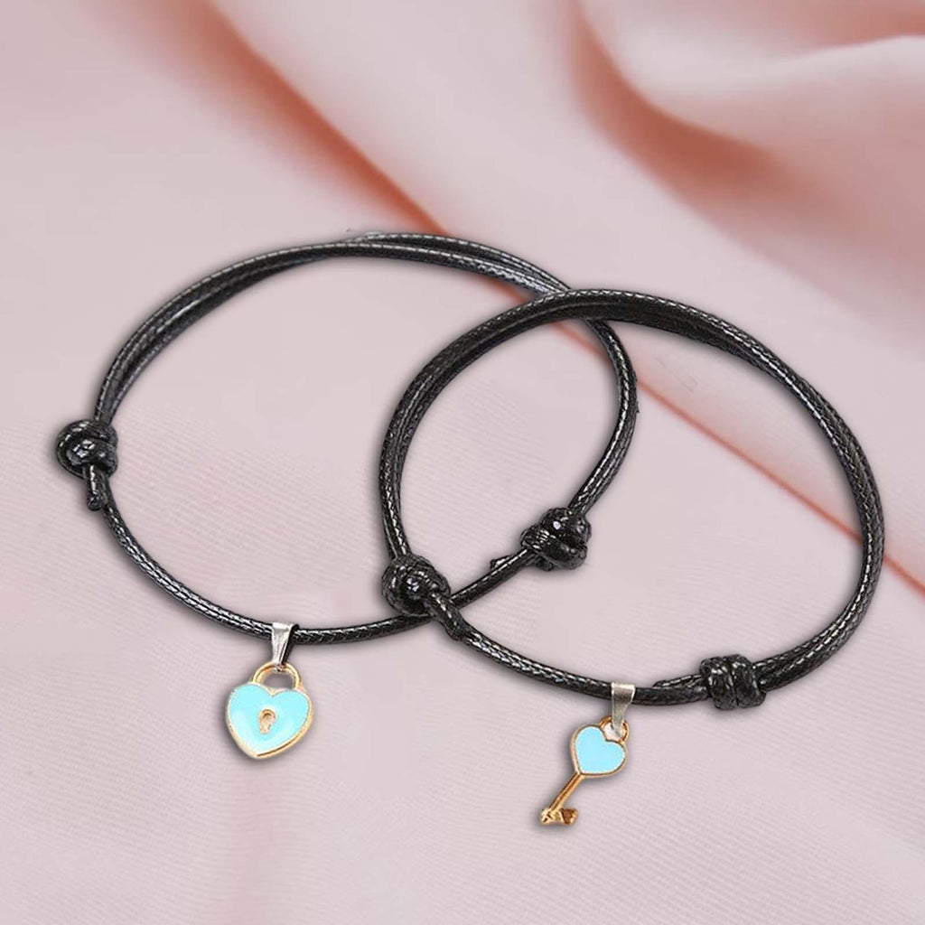 Maxbell Heart Decor Matching Bracelets Set for Women Men Delicate Accessory Blue