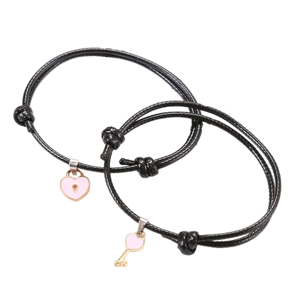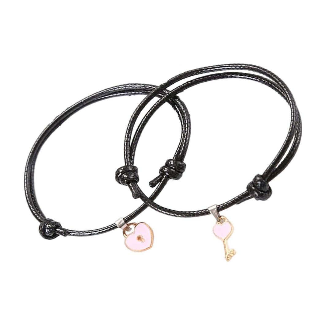Maxbell Heart Decor Matching Bracelets Set for Women Men Delicate Accessory Pink