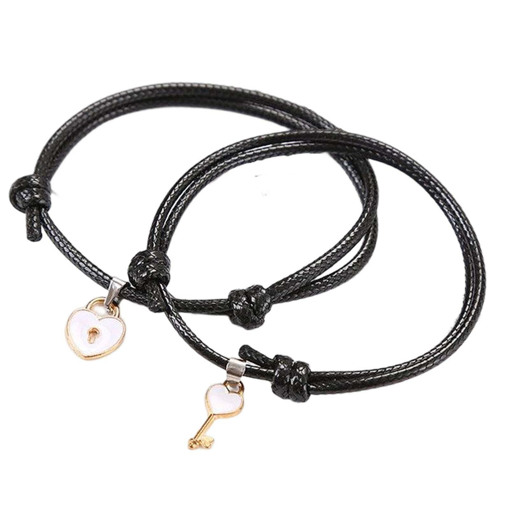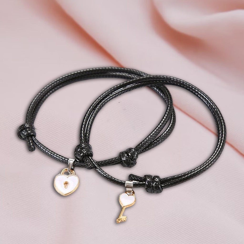 Maxbell Heart Decor Matching Bracelets Set for Women Men Delicate Accessory White