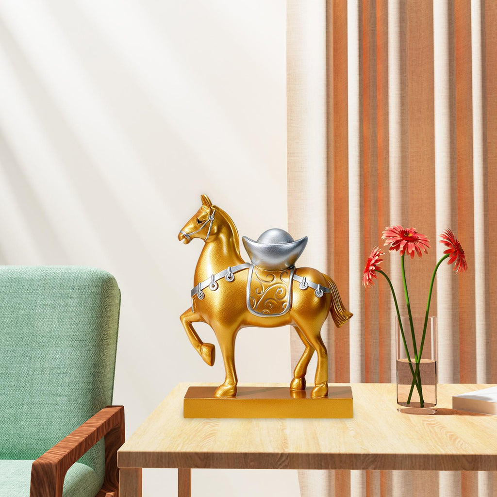 Maxbell Horse Statue Resin Figurine Sculpture Art Craft for Home Desk Decoration Aureate Style A