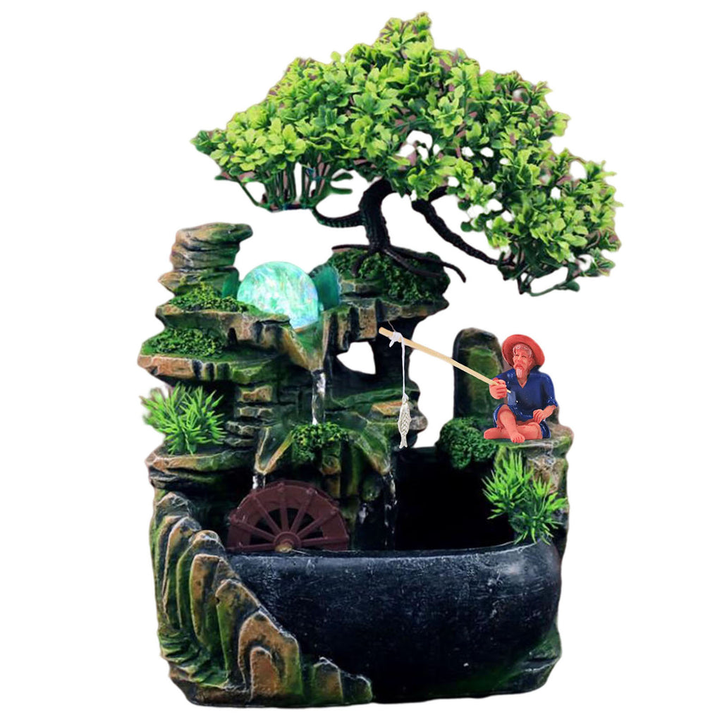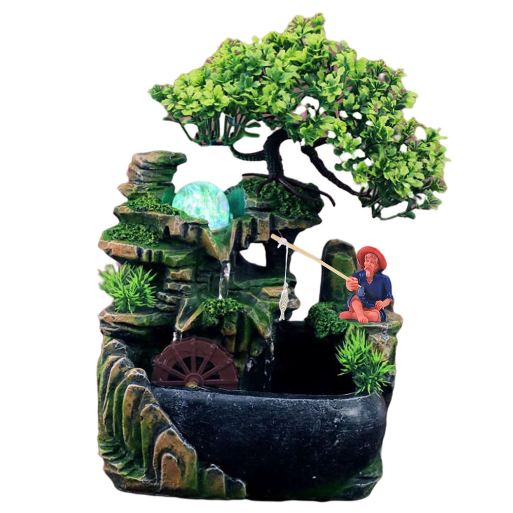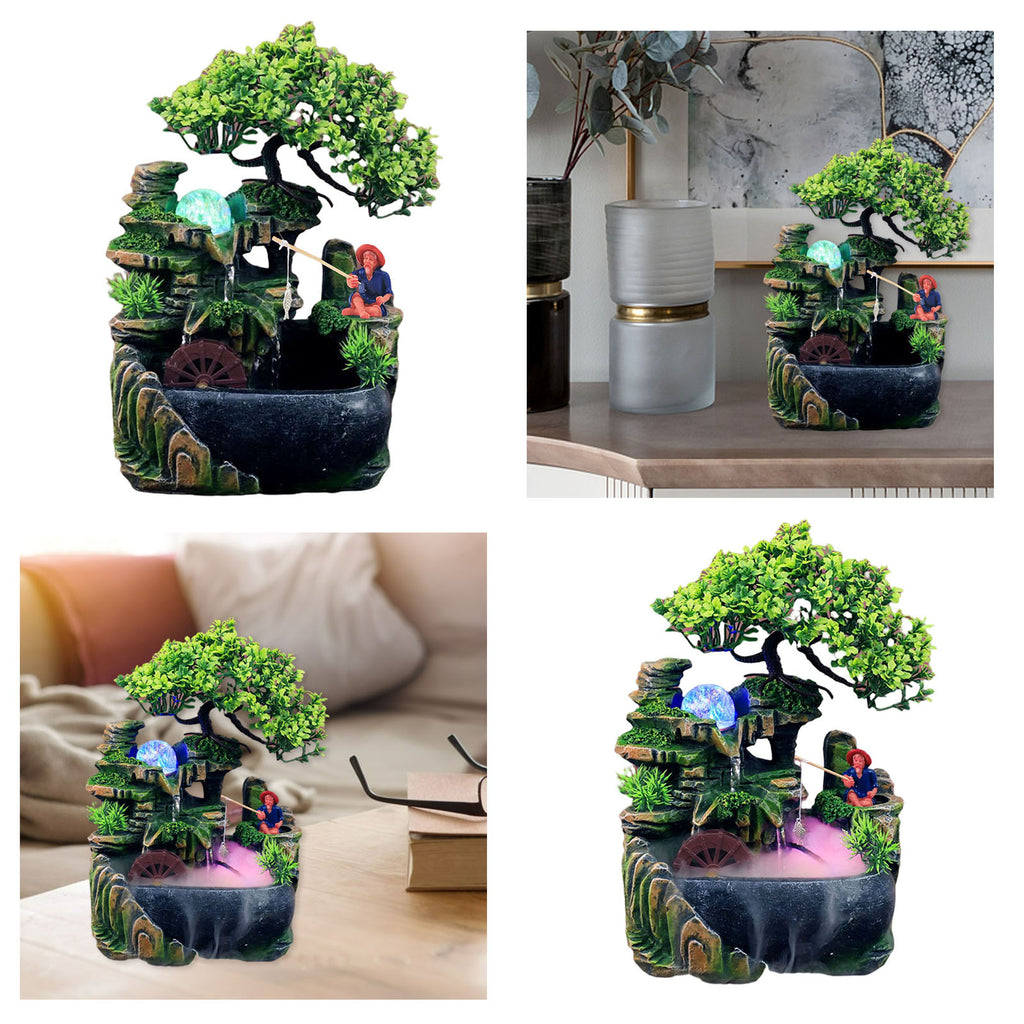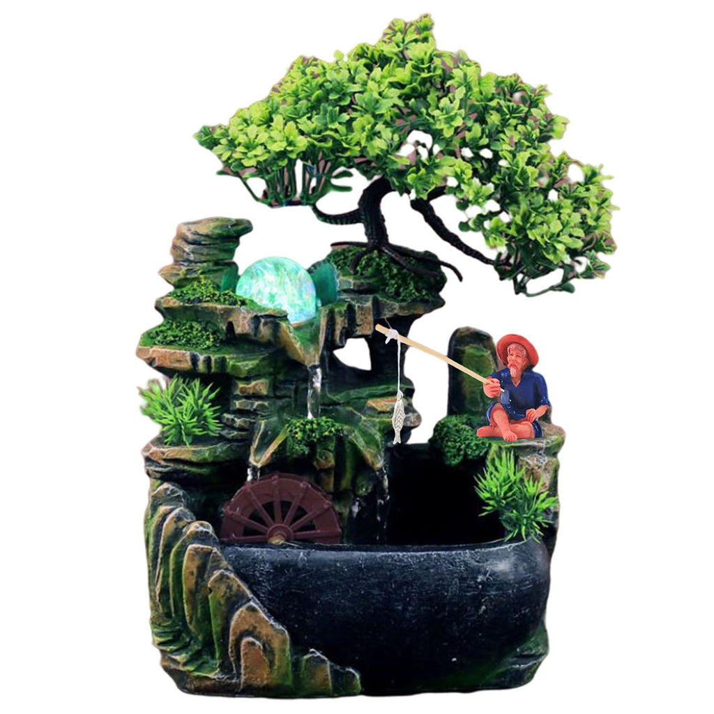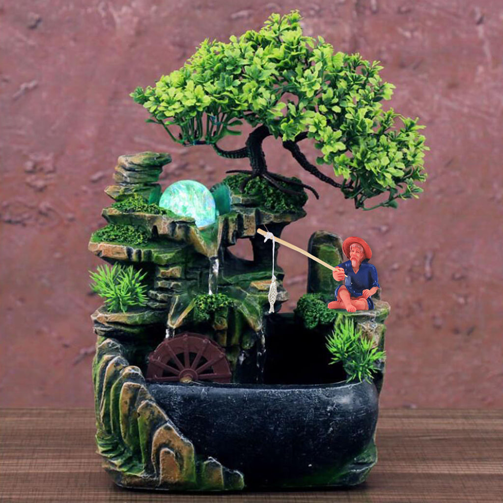 Traditional chinese Feng Shui small water fountain decor ornaments indoor outdoor. This fountain with rockeries and trees and a fisherman allows you to feel the charm of nature, create a tranquil atmosphere, soothe your stress and feel relaxed.