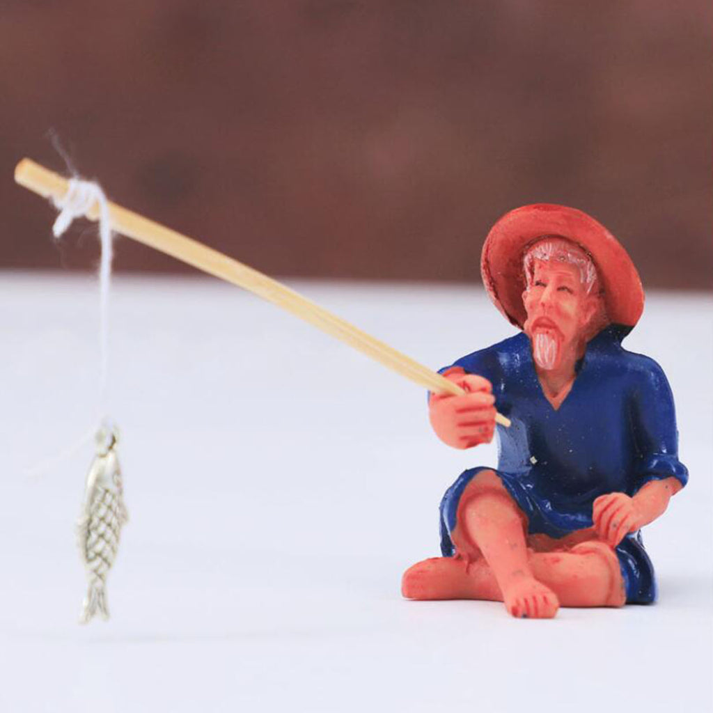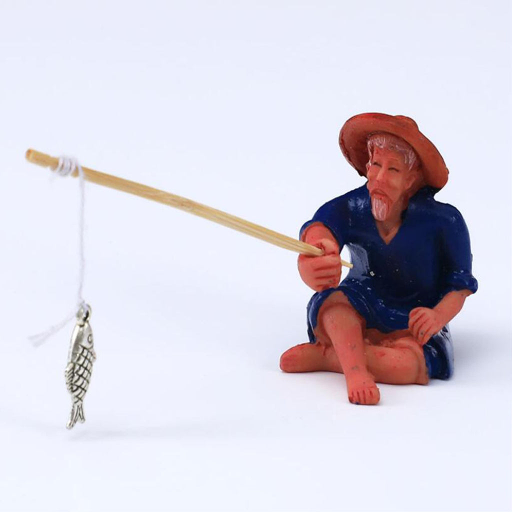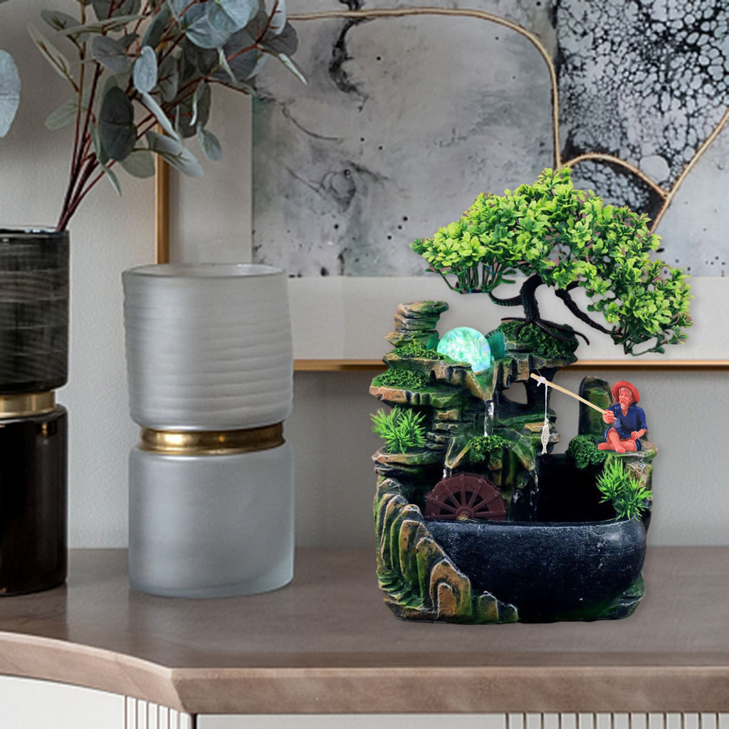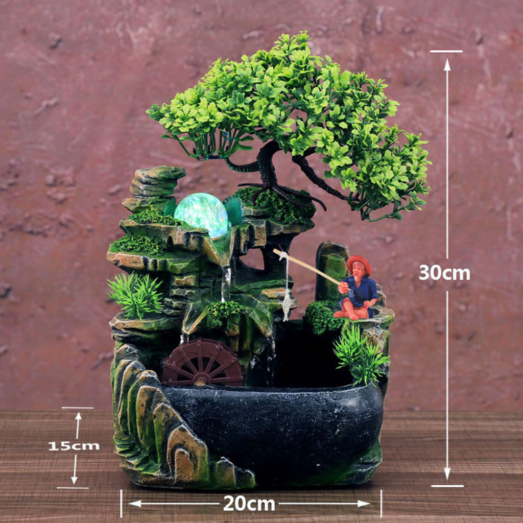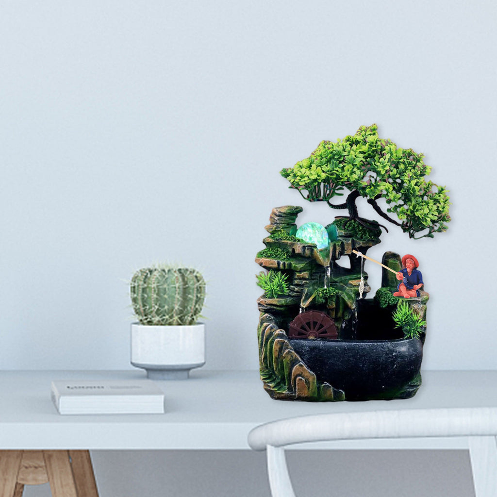 Traditional chinese Feng Shui small water fountain decor ornaments indoor outdoor. This fountain with rockeries and trees and a fisherman allows you to feel the charm of nature, create a tranquil atmosphere, soothe your stress and feel relaxed.