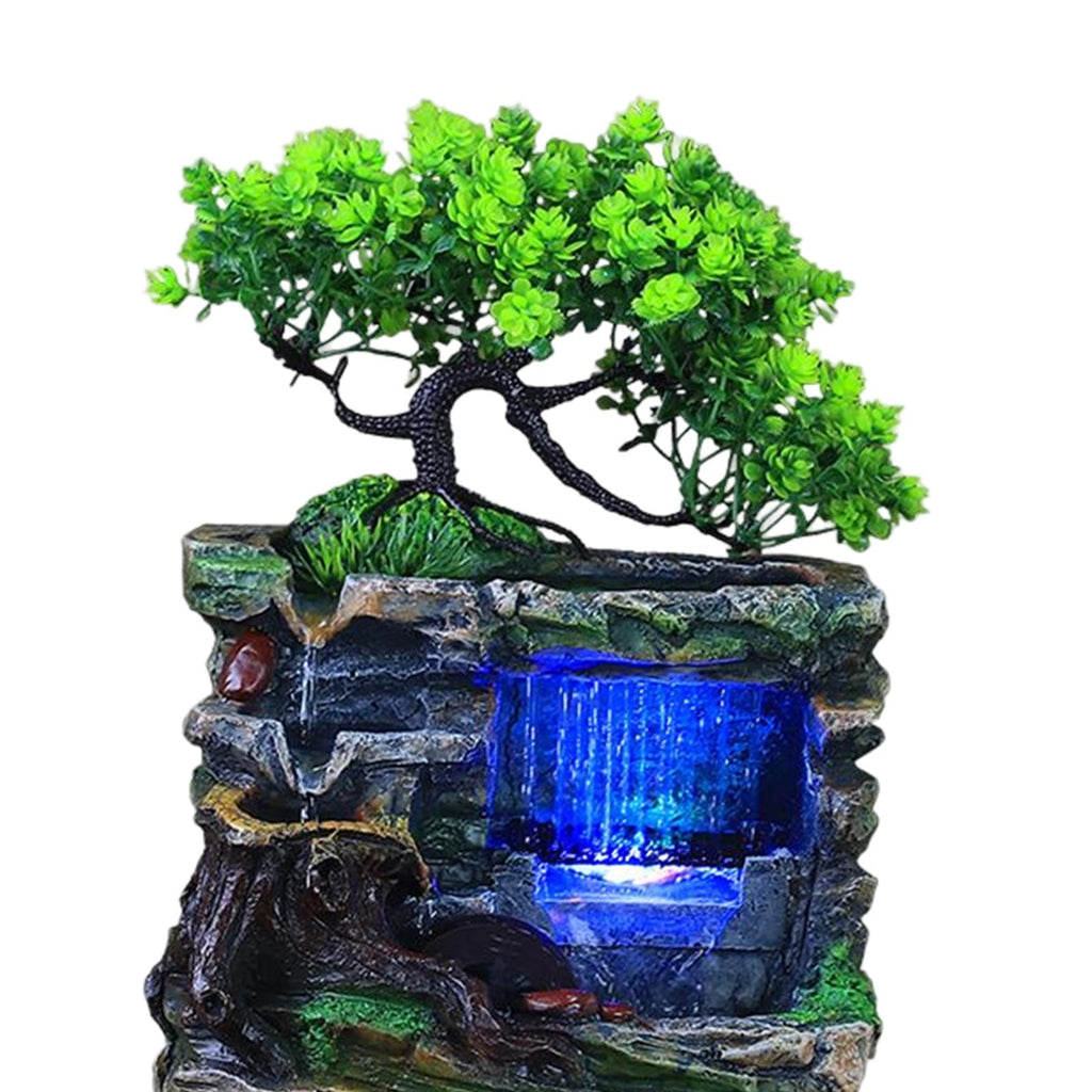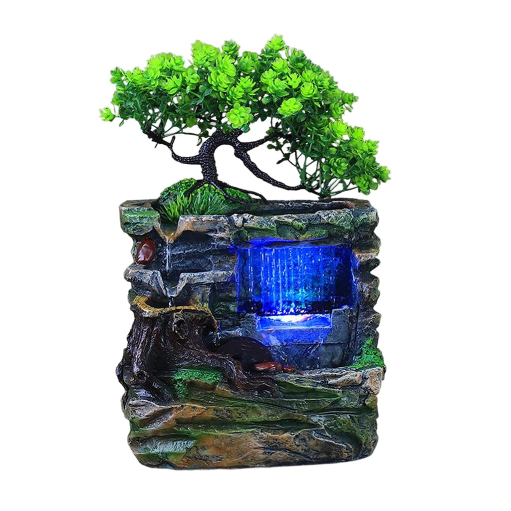 PREMIUM QUALITY: made of premium quality sturdy resin, lightweight and durable. Adopts simulation landscape modeling, this fountain with rockeries and trees allows you to feel the charm of nature, create a tranquil atmosphere.
