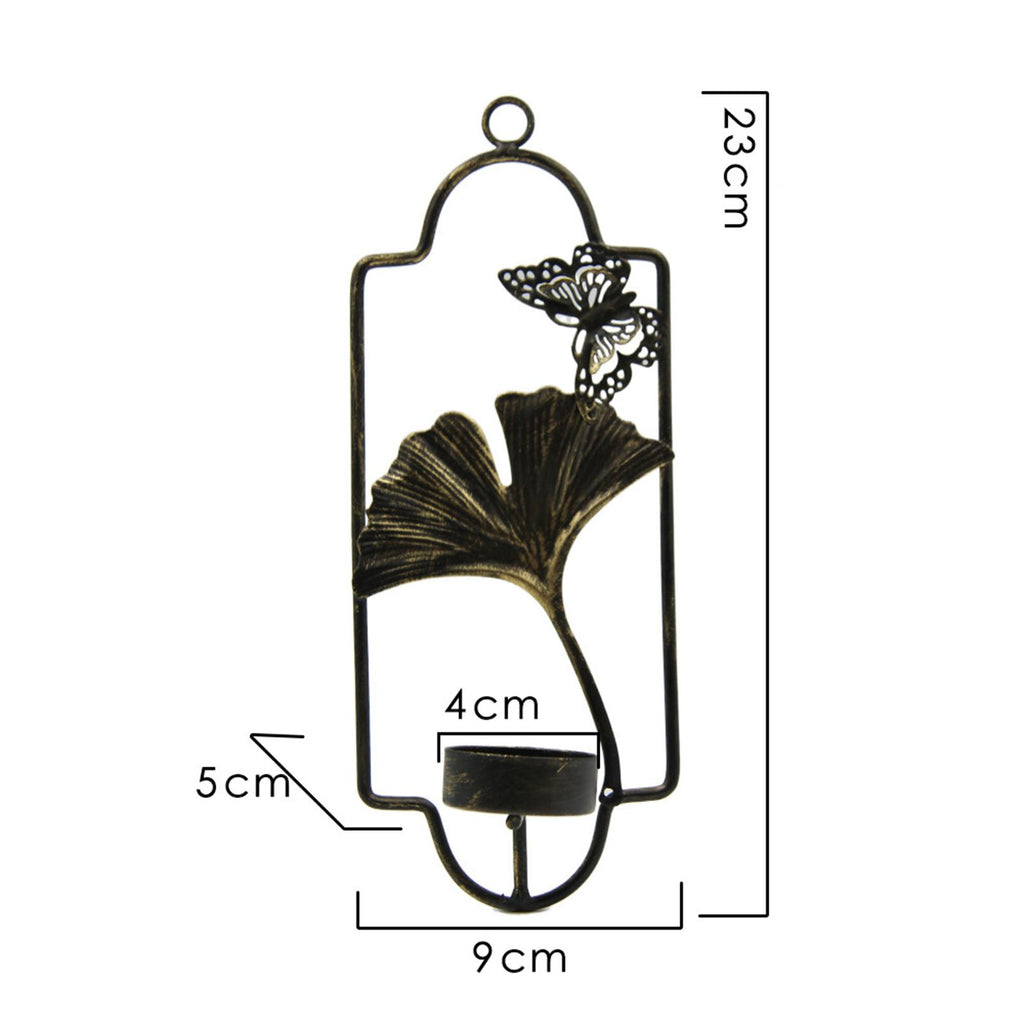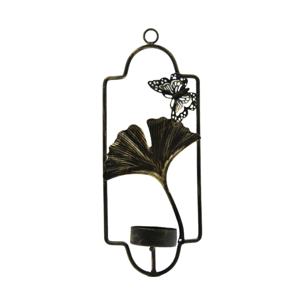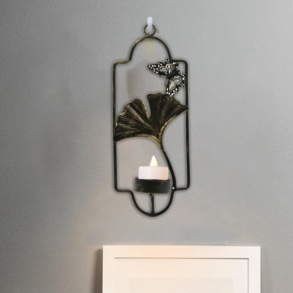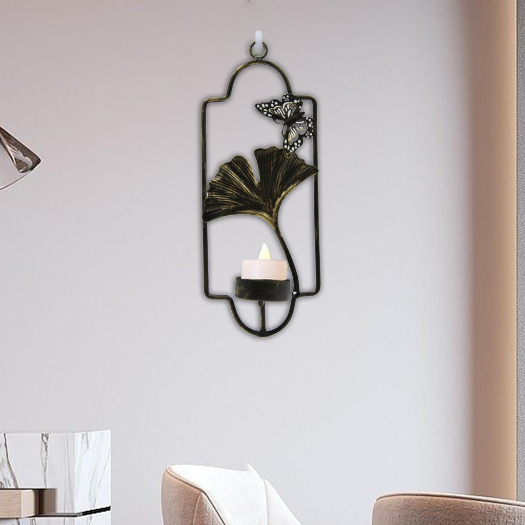 Maxbell Iron Wall Mounted Candle Holder Candlestick Holder Home Decor Black Ginkgo