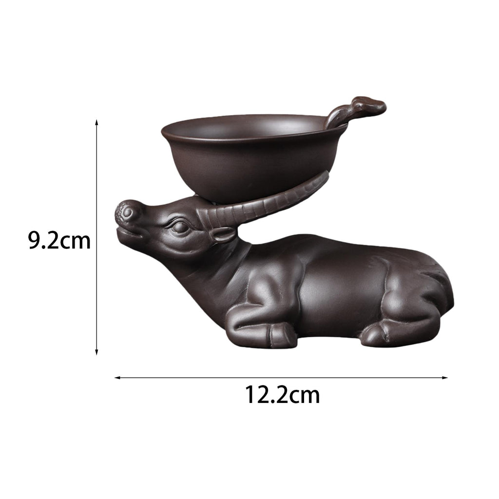 This exquisite tea set includes decorative ceramic cow stand and tea strainer.
