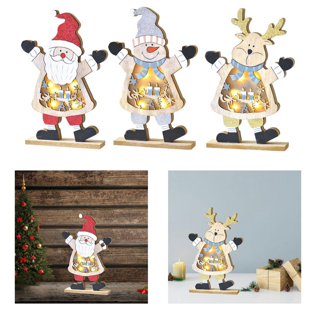Maxbell LED Wooden Christmas Table Decoration Battery Powered Indoor Decor Santa