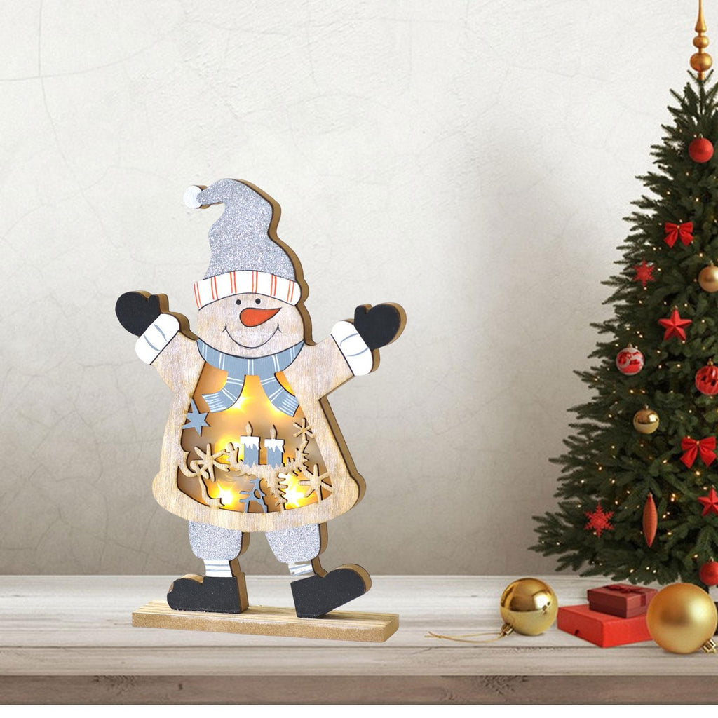 Maxbell LED Wooden Christmas Table Decoration Battery Powered Indoor Decor Snowman