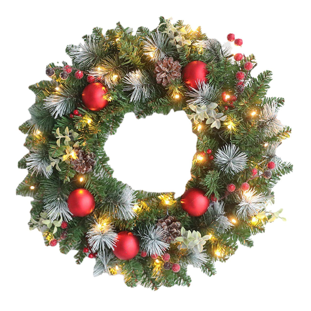 element design:The Christmas wreath is designed with various xmas elements,such as:red artificial cones,glittering Christmas ball,,to fit all season,especially Christmas decoration.