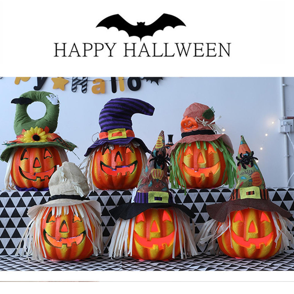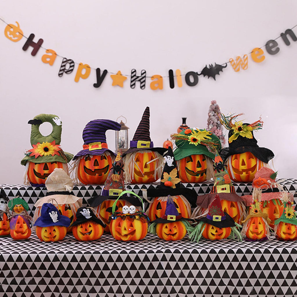 Maxbell Light up Halloween Foam Pumpkin Lantern Decorative for House Tabletop Porch style D