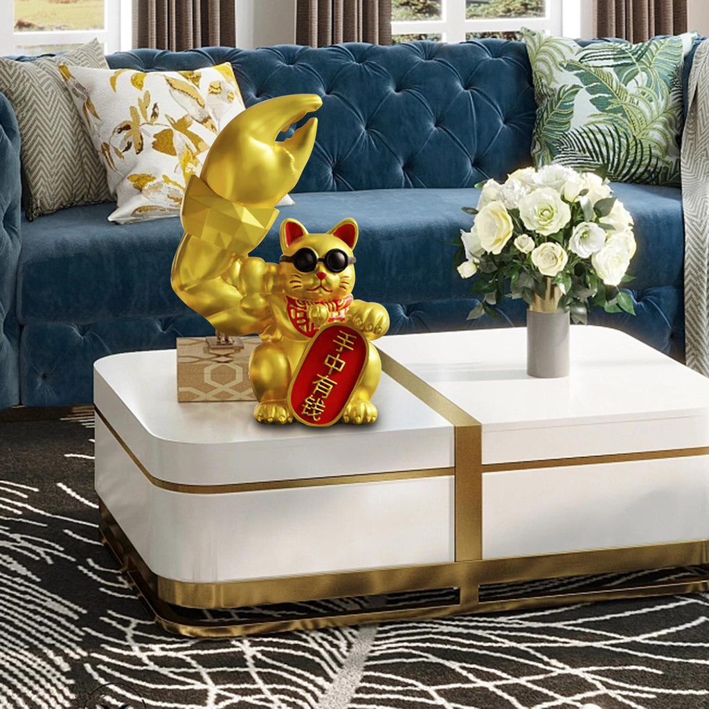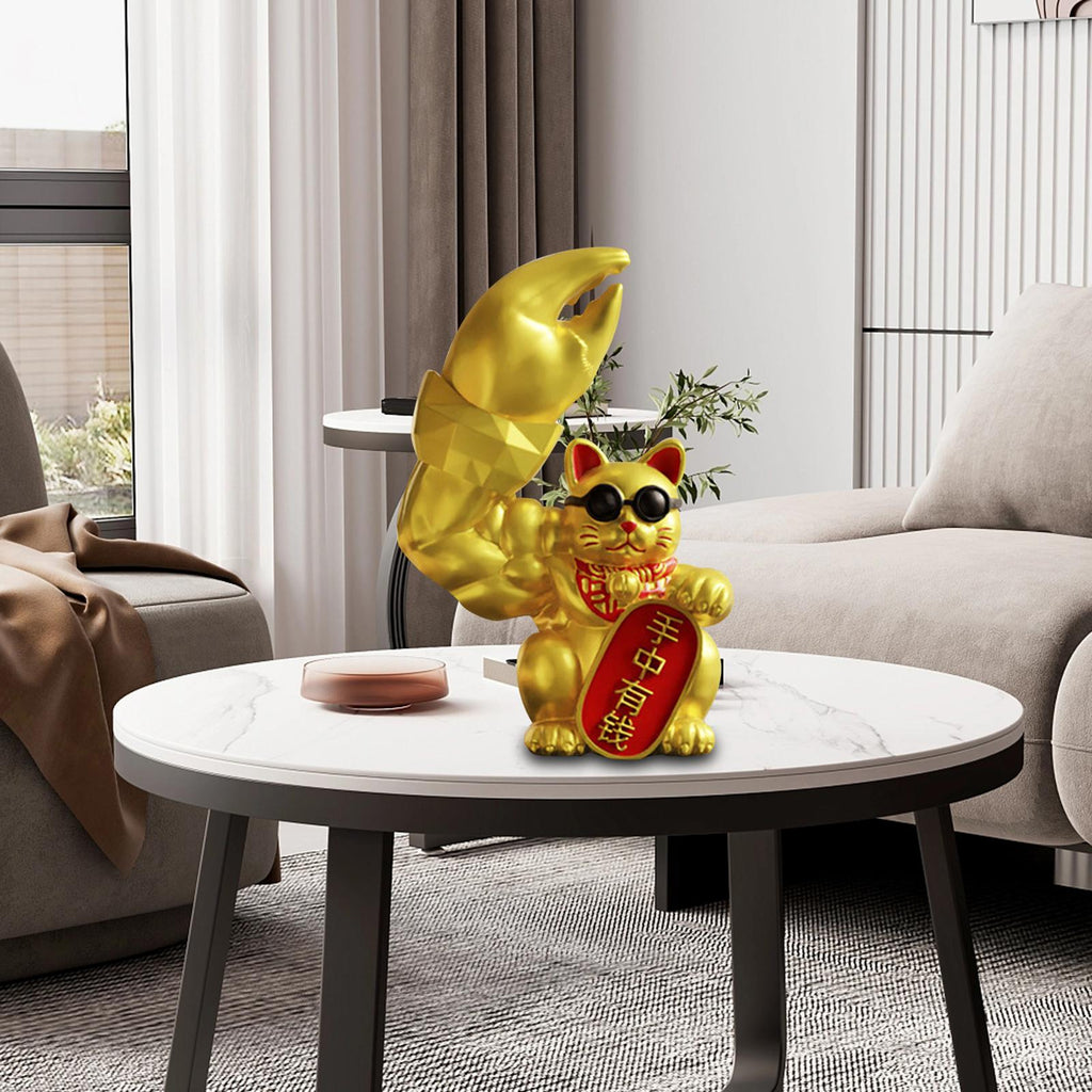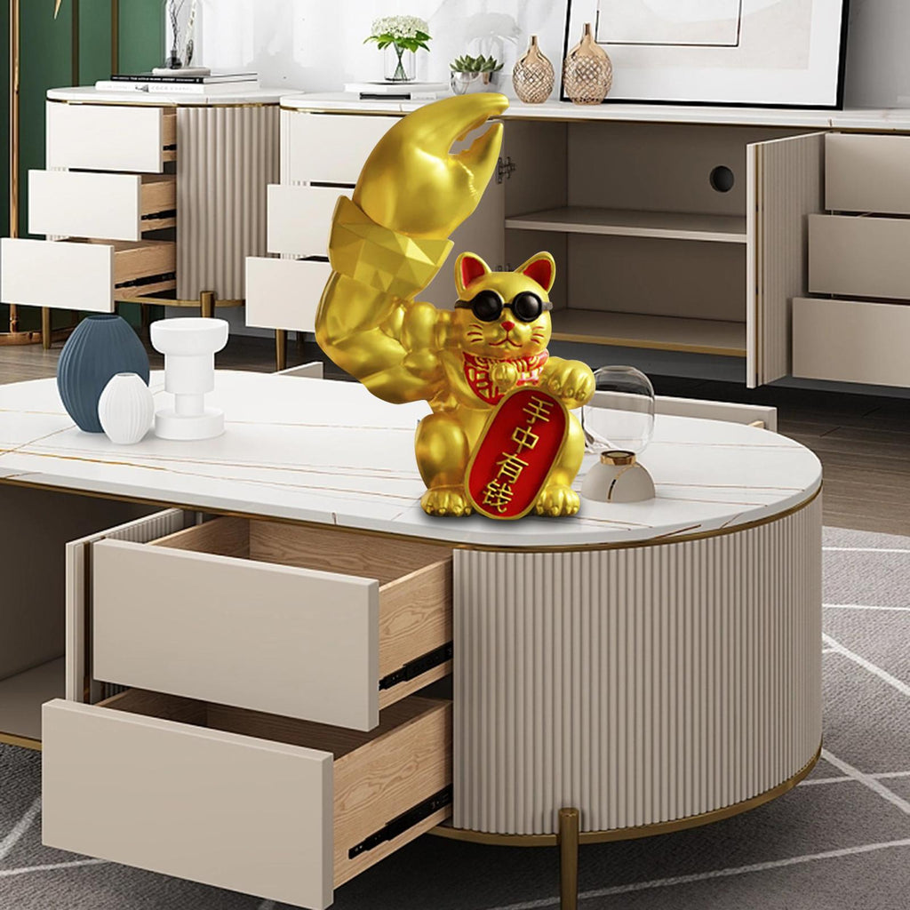 Maxbell Maxbell Lucky Cat Statue Feng Shui Sculpture for Living Room Tabletop Decoration gold