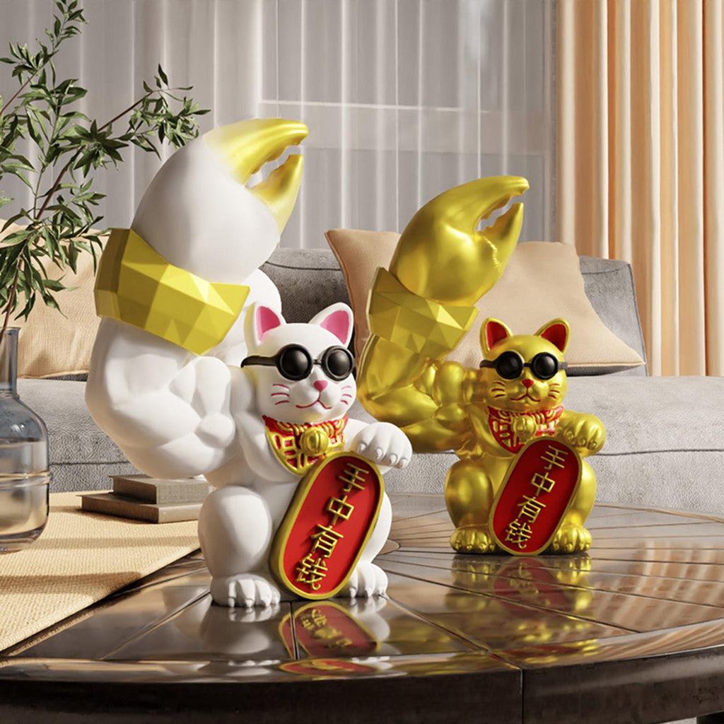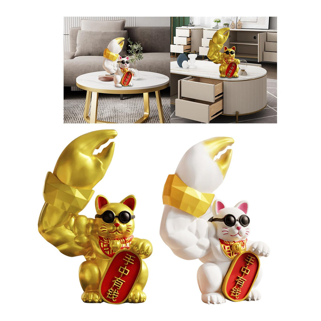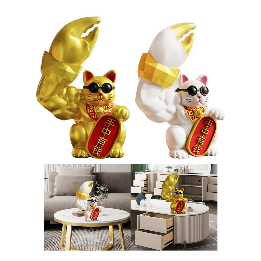 Maxbell Maxbell Lucky Cat Statue Feng Shui Sculpture for Living Room Tabletop Decoration gold