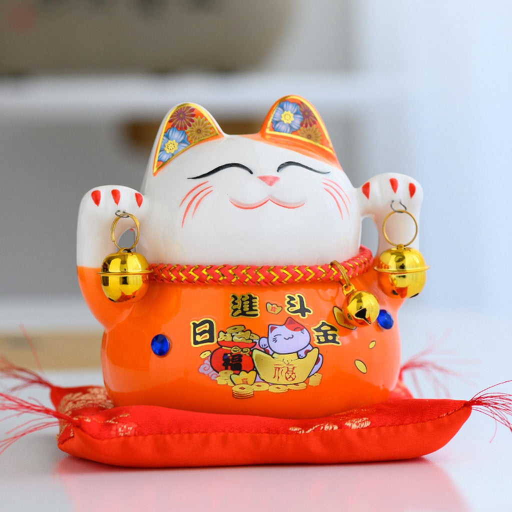 Maxbell Lucky Cat Statue Piggy Bank Animal Sculpture for New Year Decoration Orange