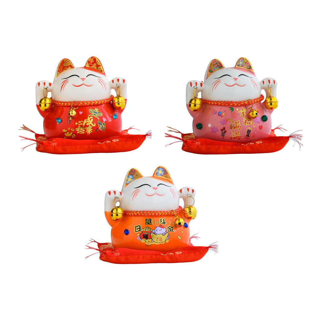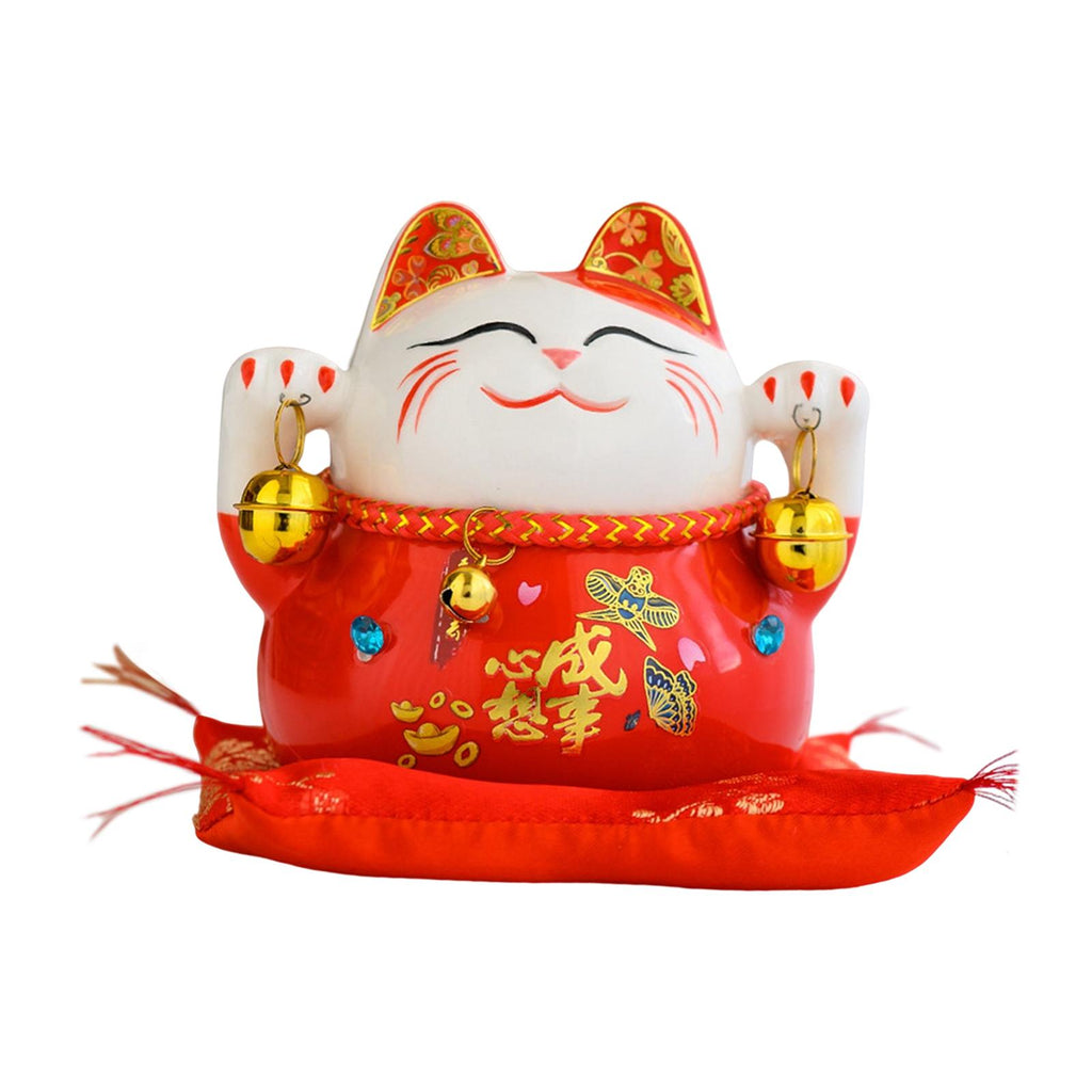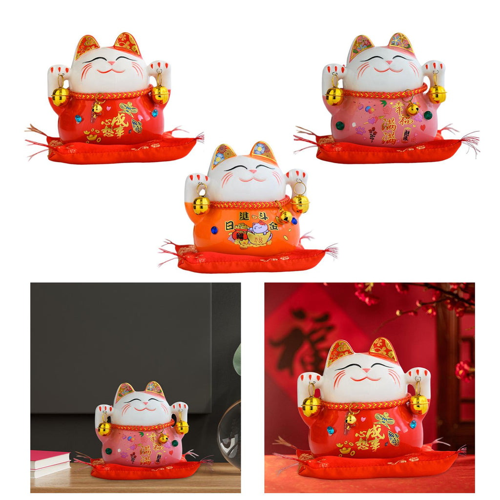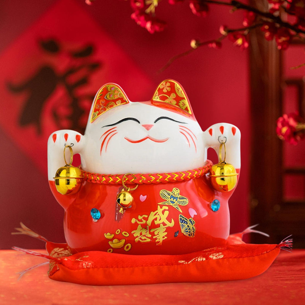 Maxbell Lucky Cat Statue Piggy Bank Animal Sculpture for New Year Decoration Red