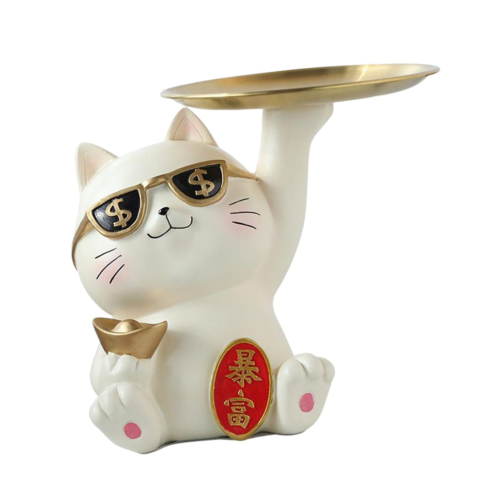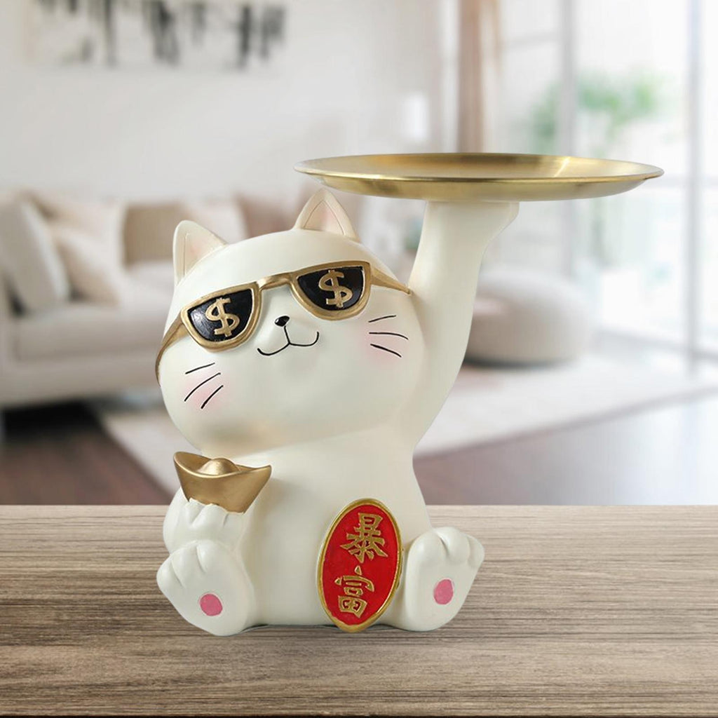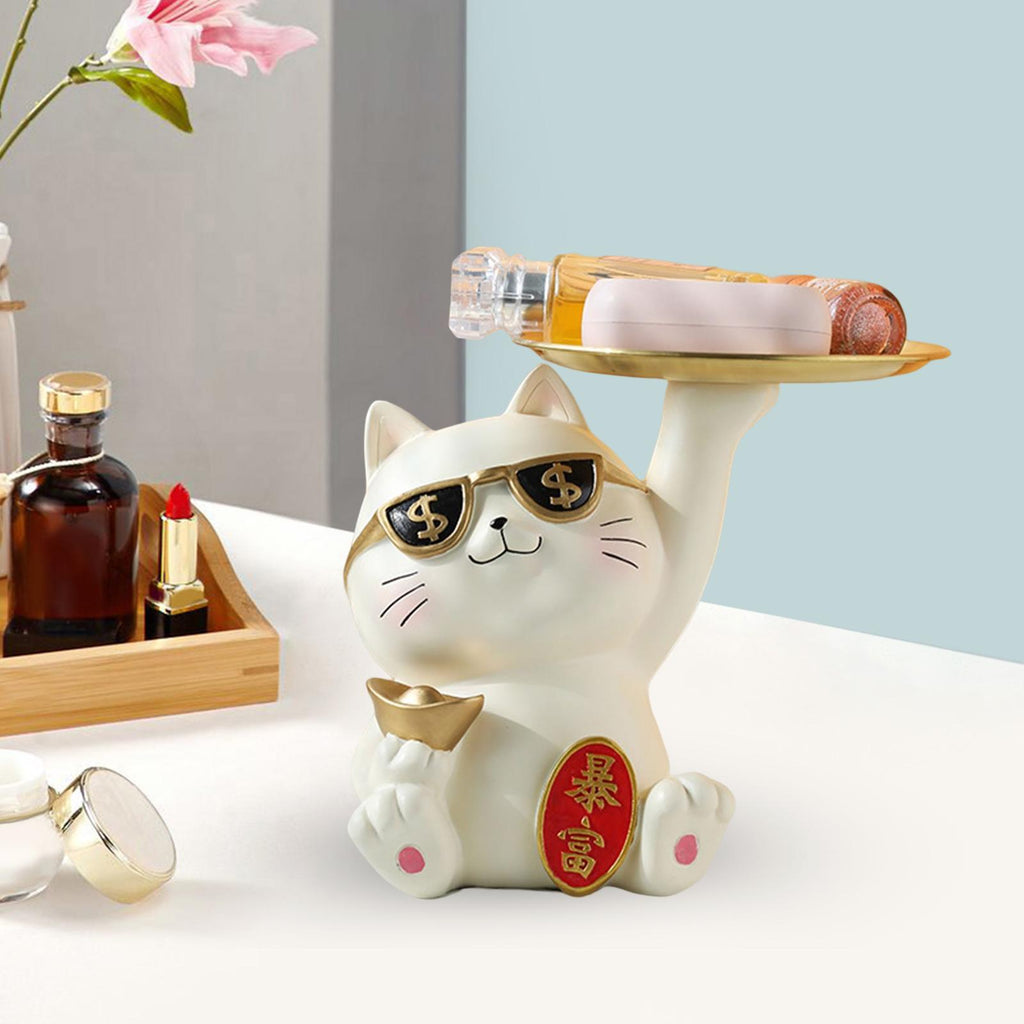 Maxbell Maxbell Lucky Cat Statue Storage Tray Candy Dish for Living Room Home Decoration Khaki