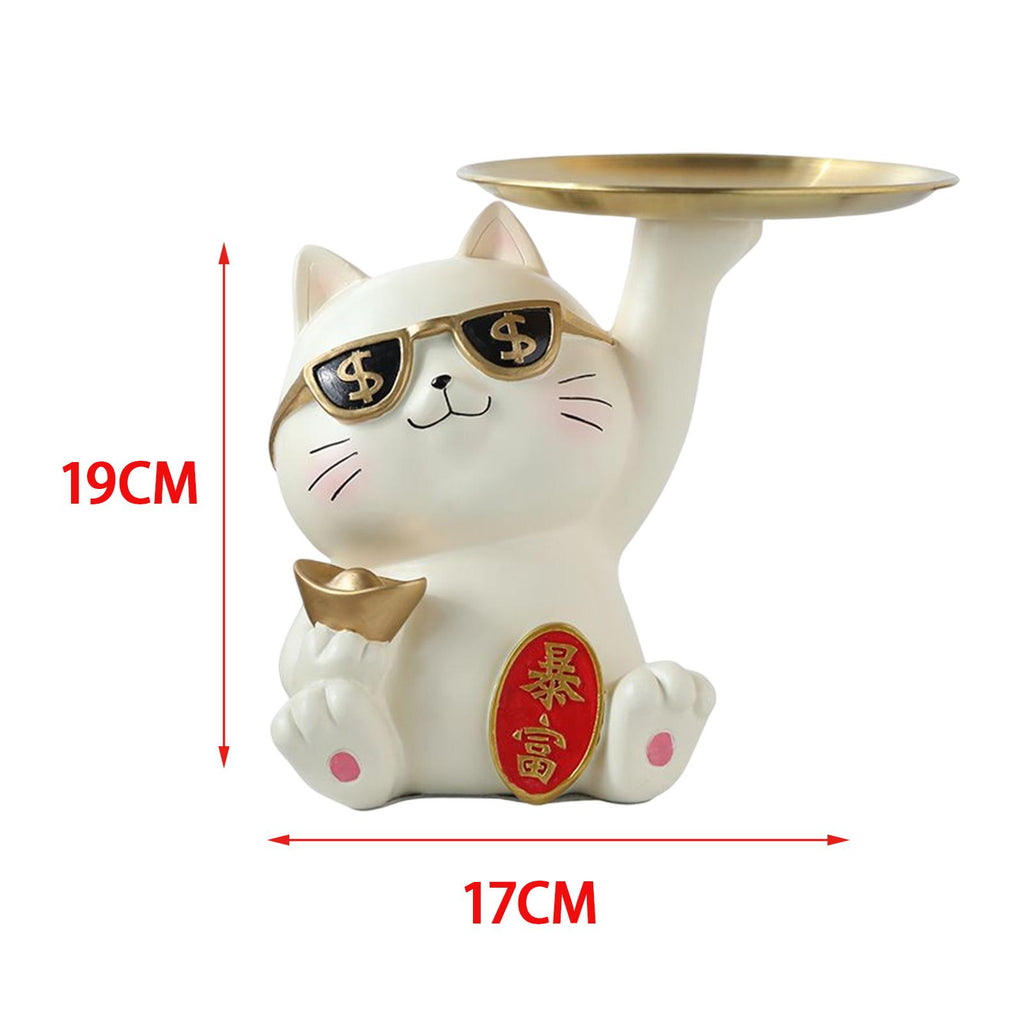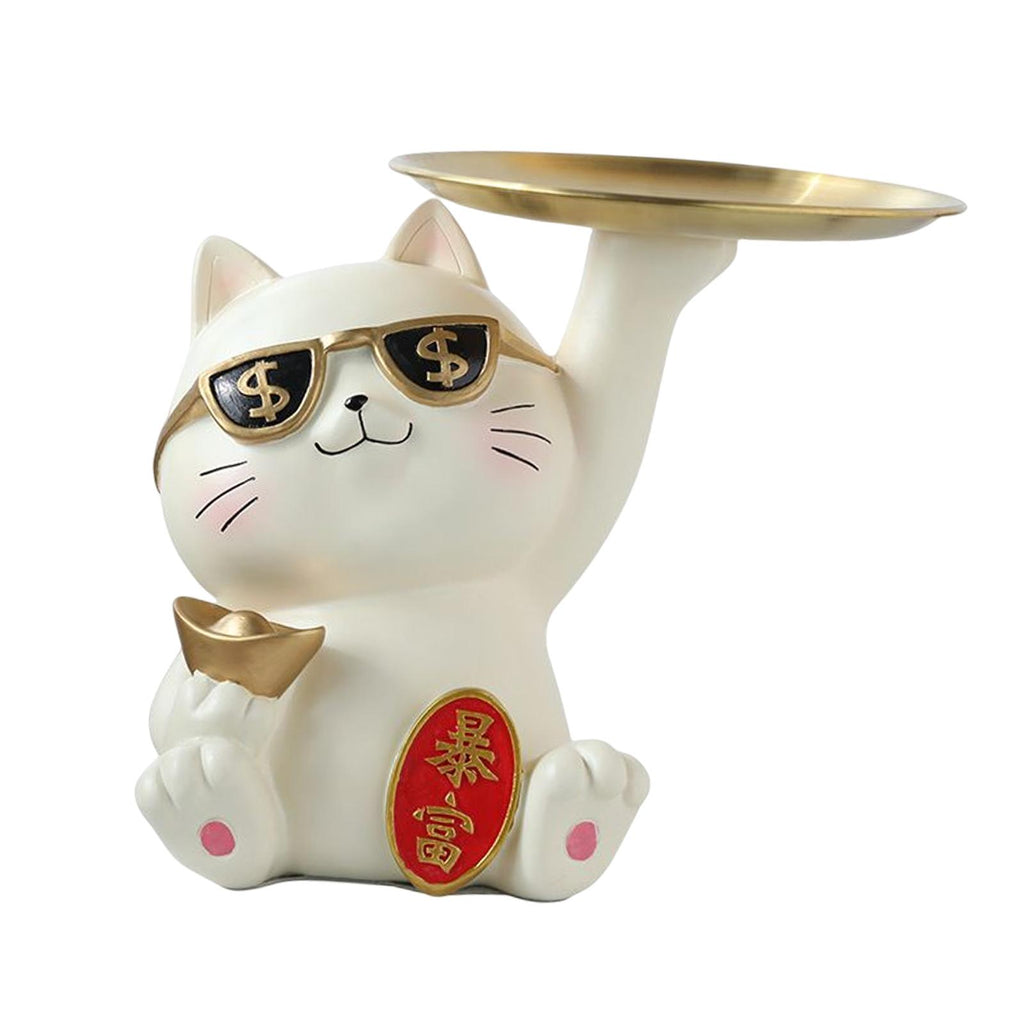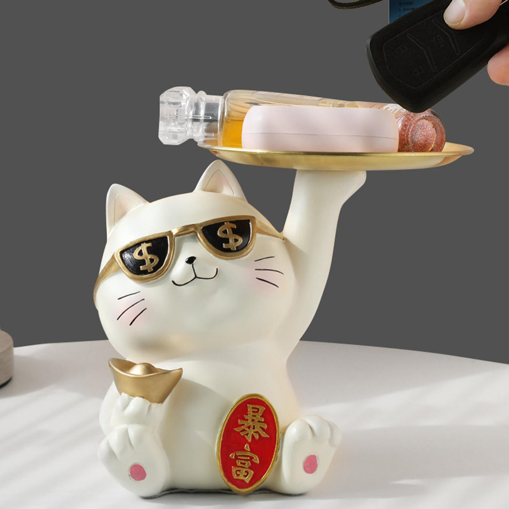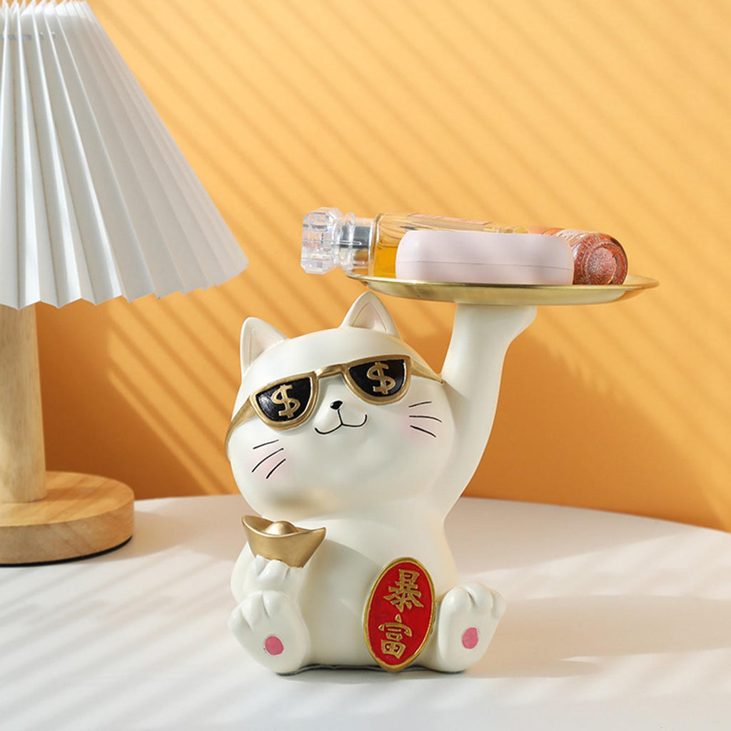 Maxbell Maxbell Lucky Cat Statue Storage Tray Candy Dish for Living Room Home Decoration Khaki