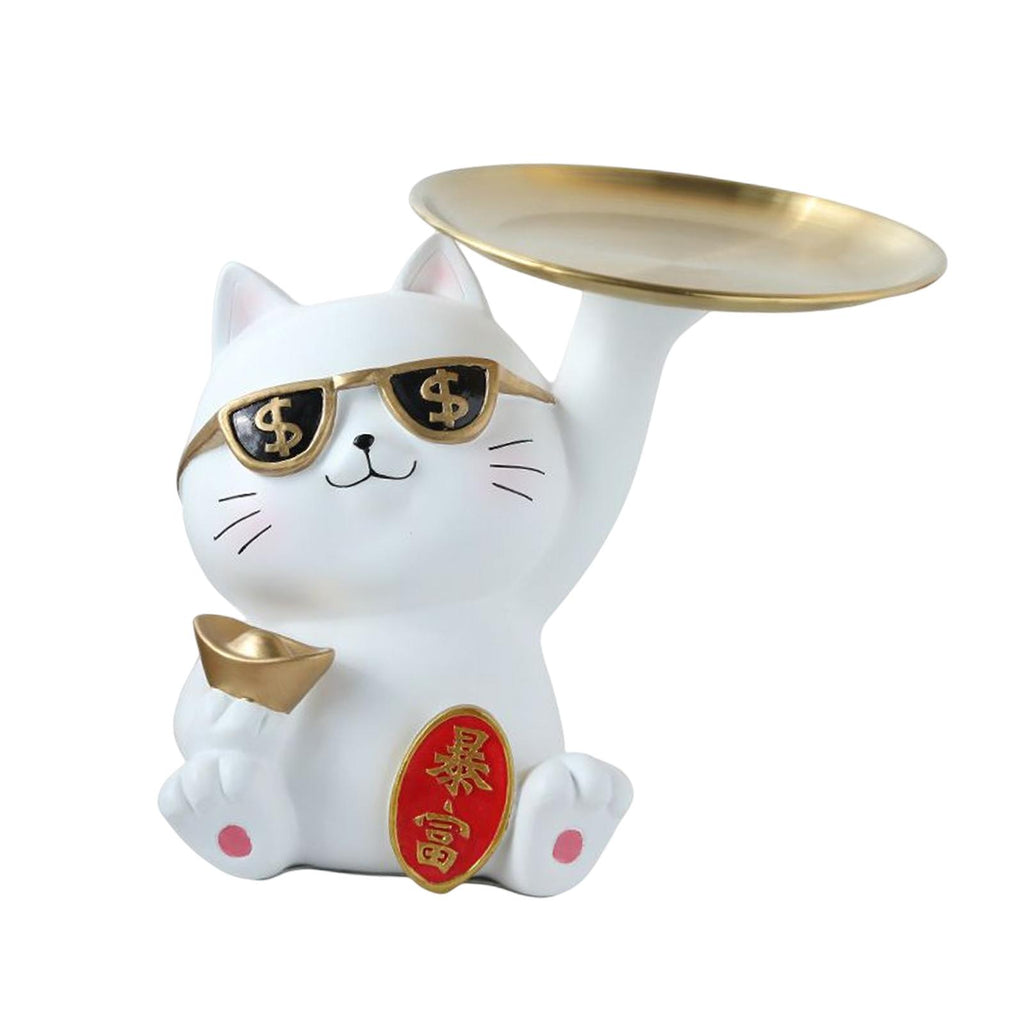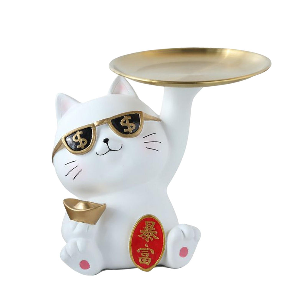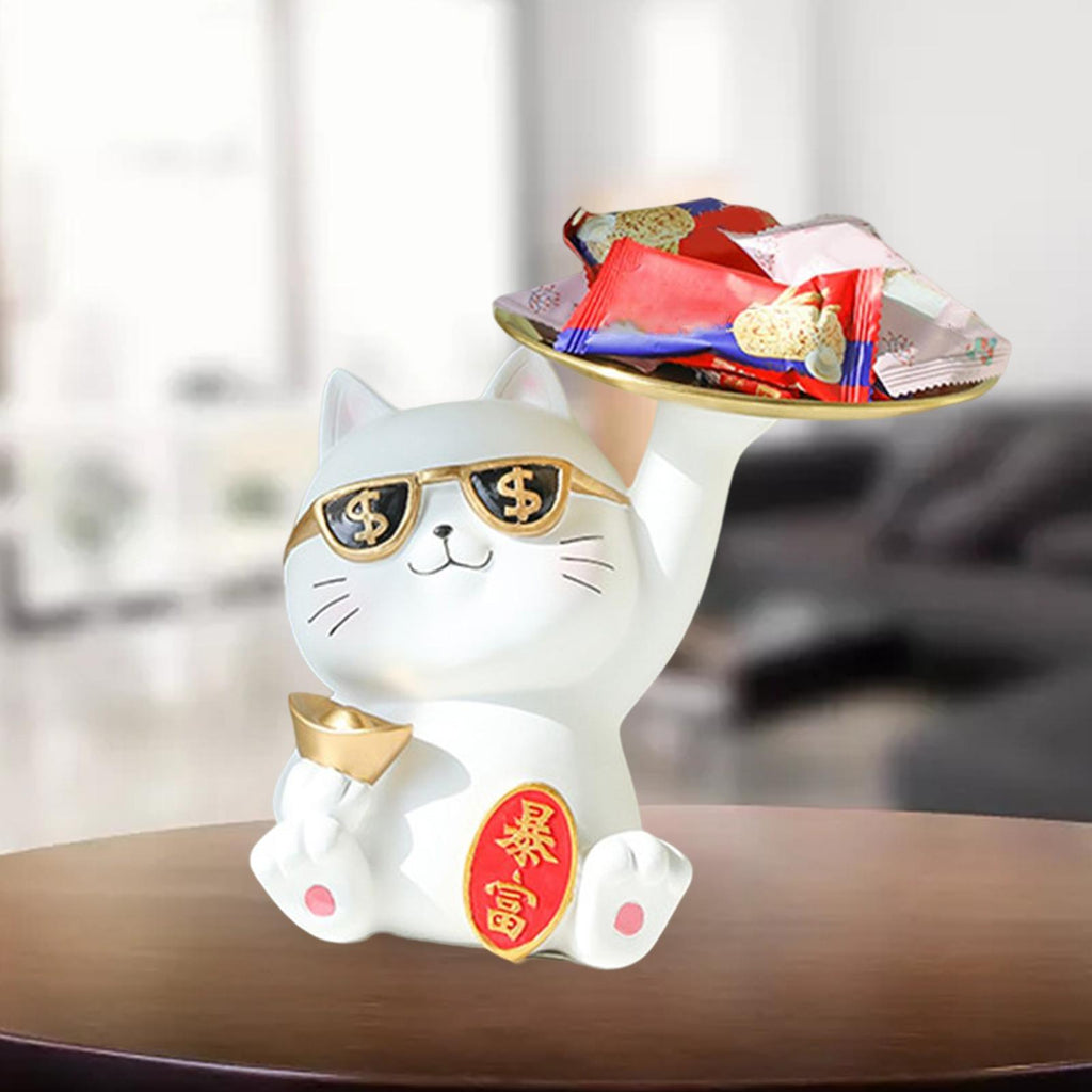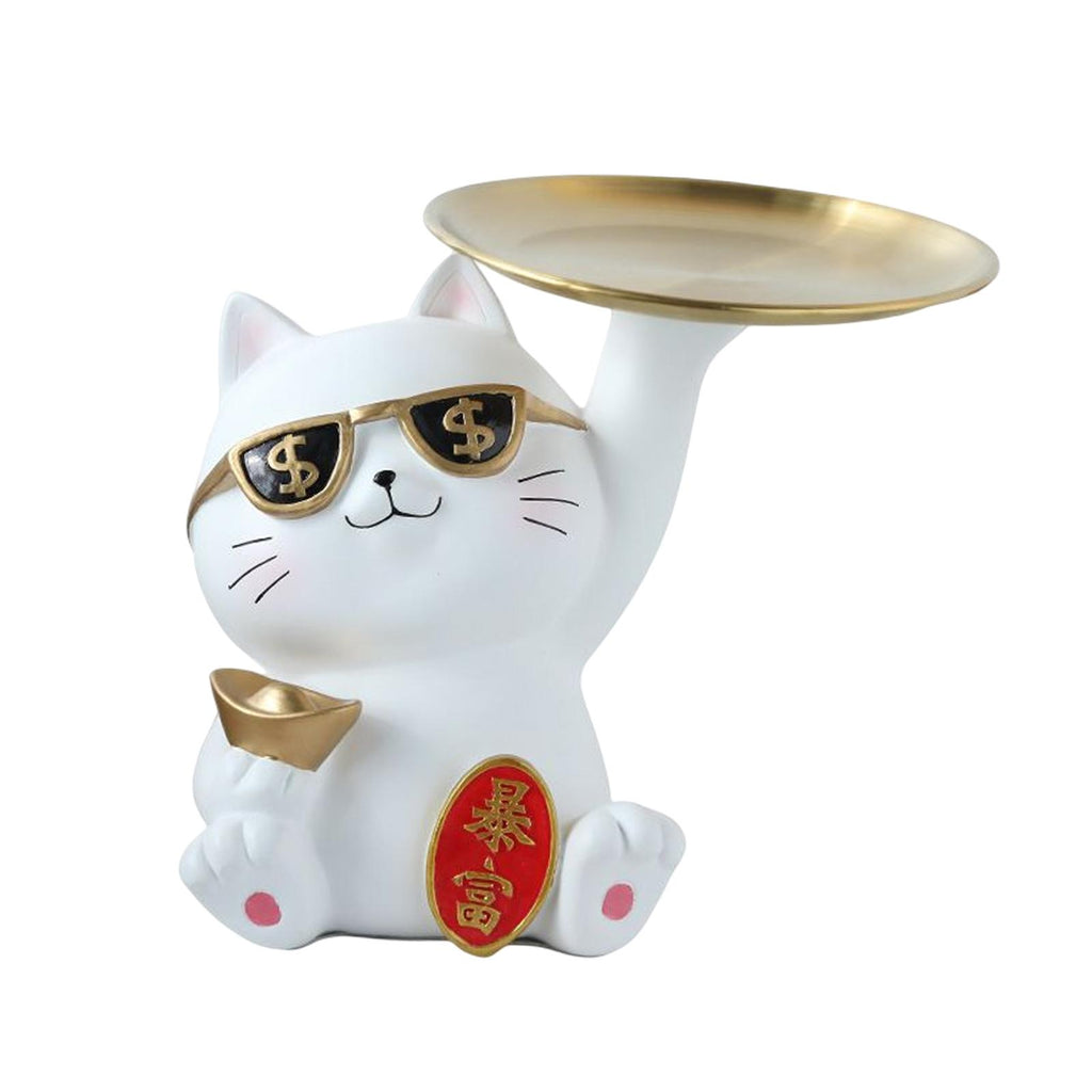 Maxbell Maxbell Lucky Cat Statue Storage Tray Candy Dish for Living Room Home Decoration White