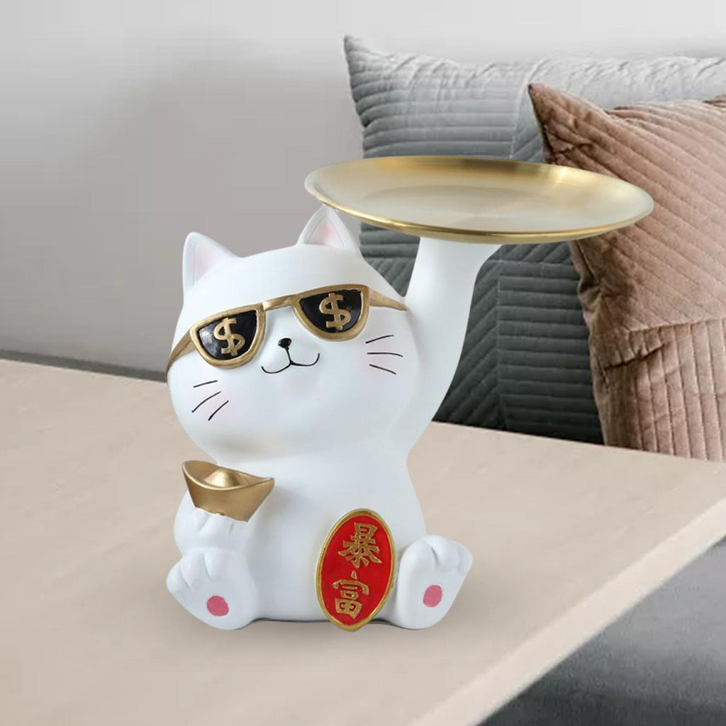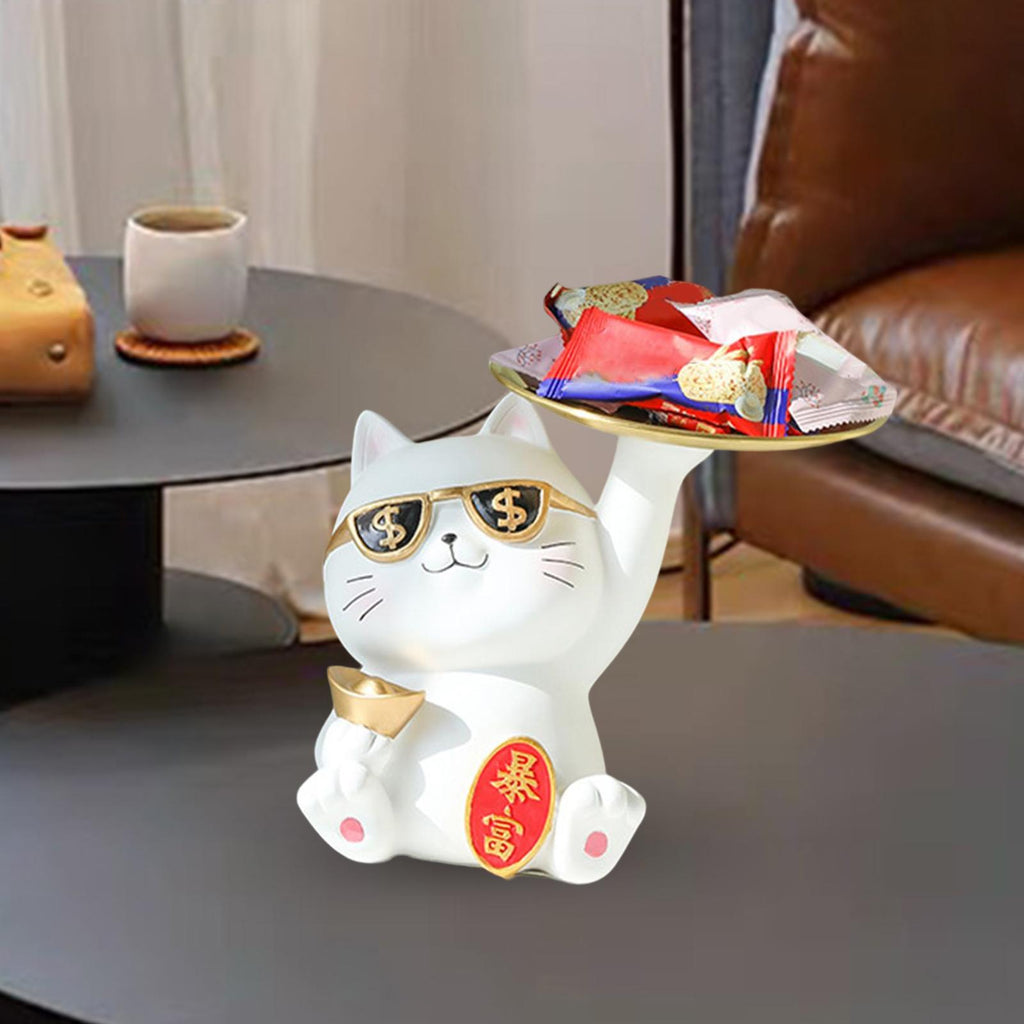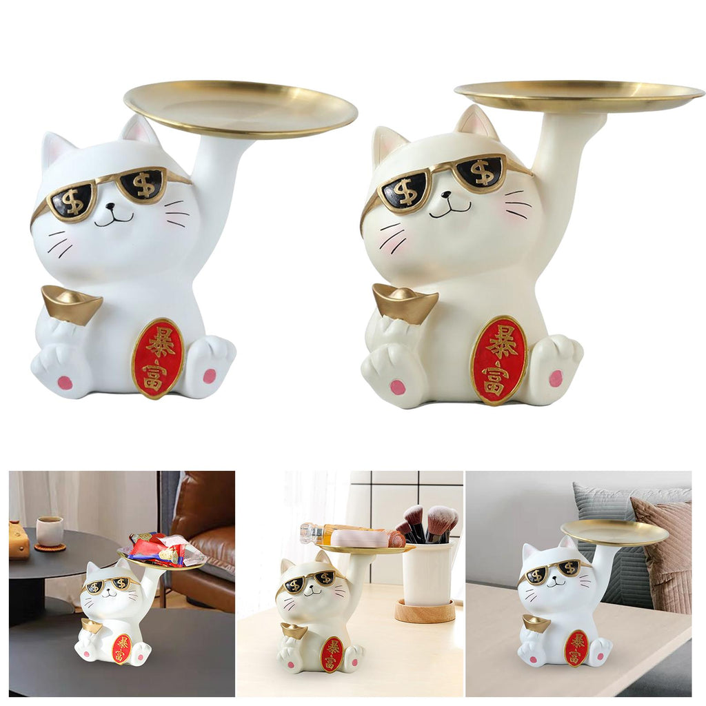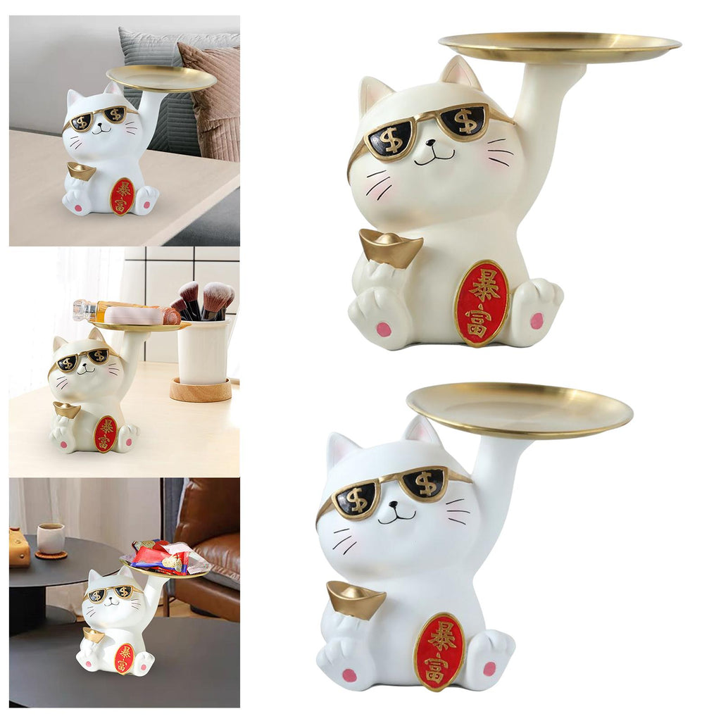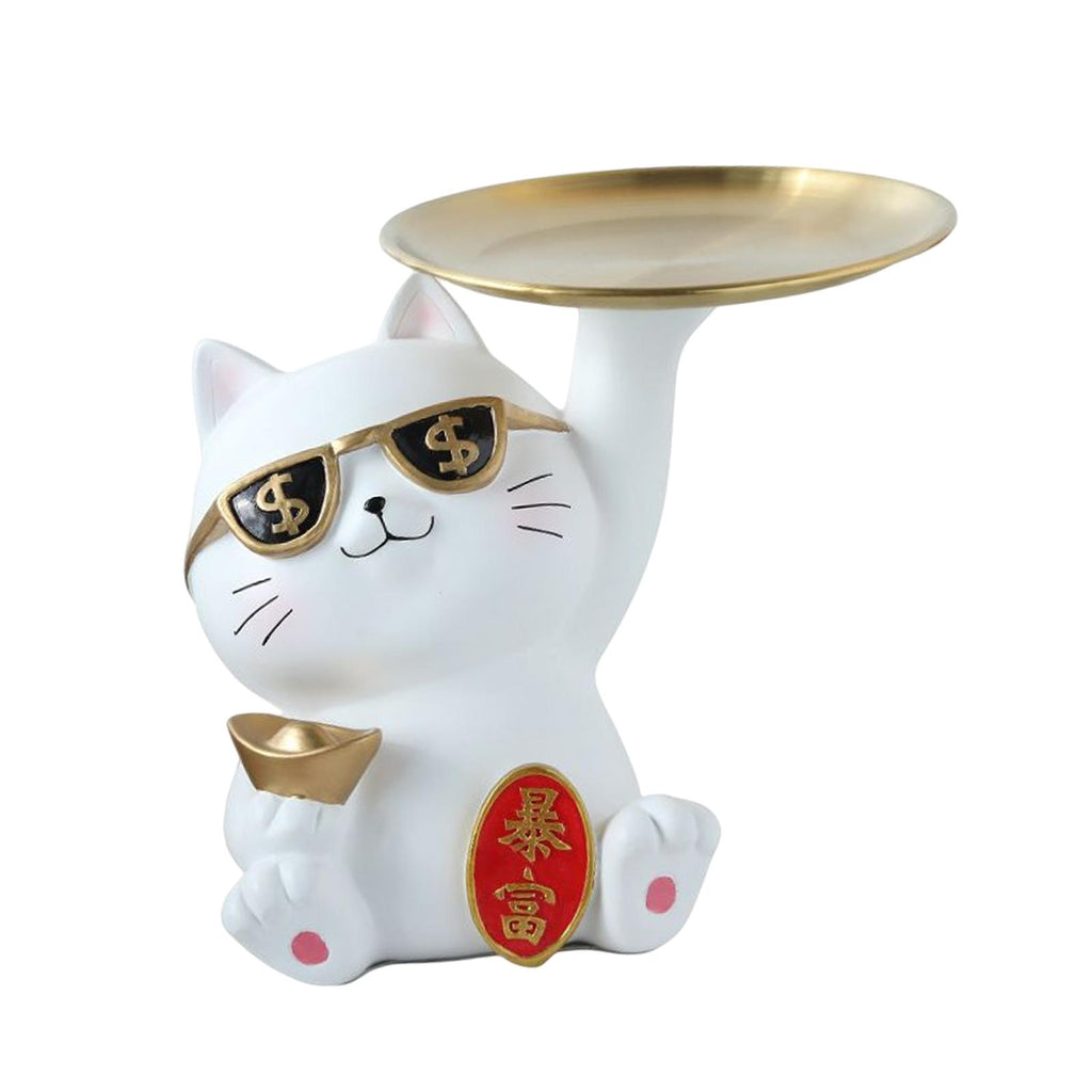 Maxbell Maxbell Lucky Cat Statue Storage Tray Candy Dish for Living Room Home Decoration White